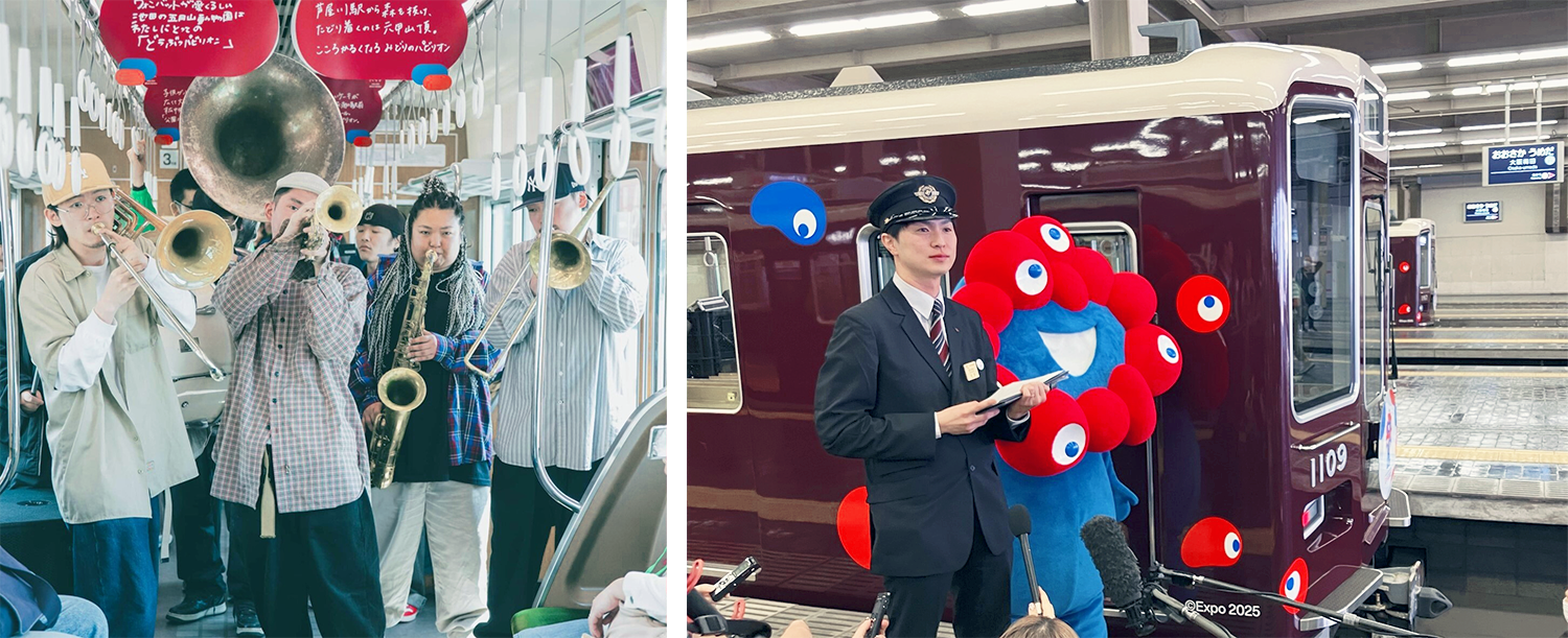 On April 13, 2024—exactly one year before the Expo begins—we operated the Hankyu EXPO TRAIN as one of our initiatives to maximize the value of mobility. The train included markets selling products from regions along the train line, and featured decorations and performances that enabled customers to experience the world as it was in 1970—when the previous Osaka Expo was held—and the future. The EXPO TRAIN enabled us to provide a new form of mobility-centered experiential value, in which customers could enjoy encountering people, things, and experiences.