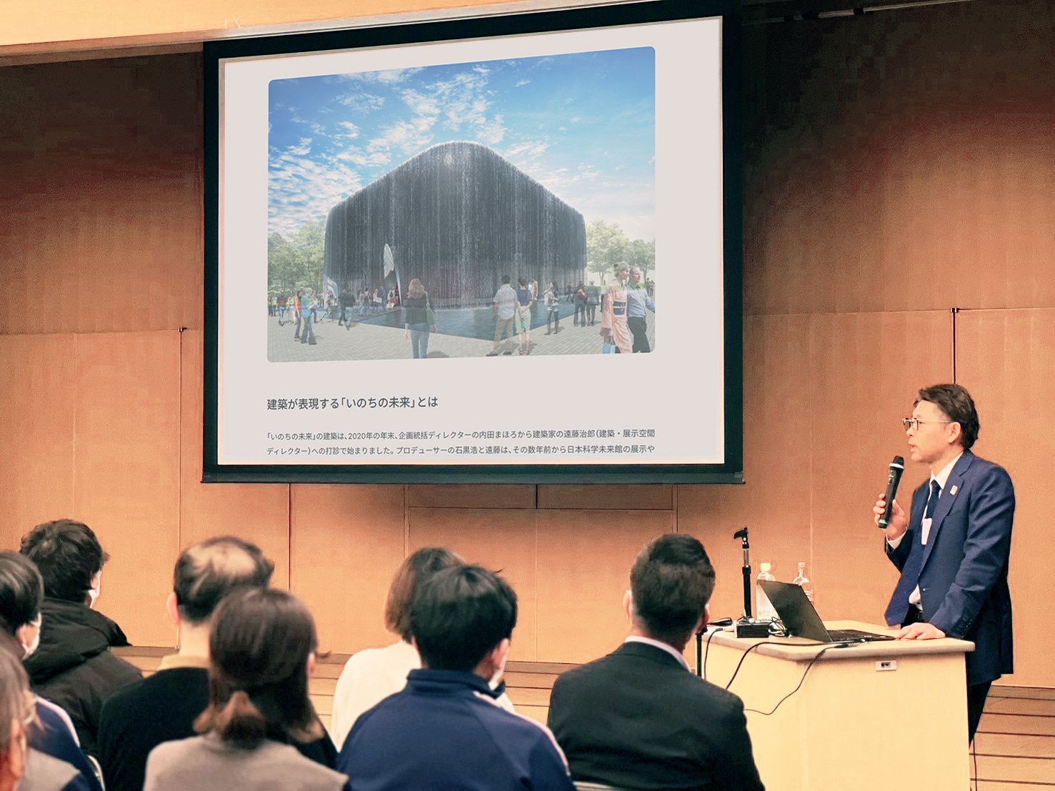 With only six months remaining until the Expo opens, there has been a significant increase in Expo-related communications around the city. Interest and expectations for the event have been steadily growing within our company as well. Last December, we hosted a talk by Prof. Ishiguro on the topic of “The Expo and Future Society.” Attendees were impressed by the depth and dynamism of the talk, commenting on how much more they were now looking forward to seeing the Expo in person.