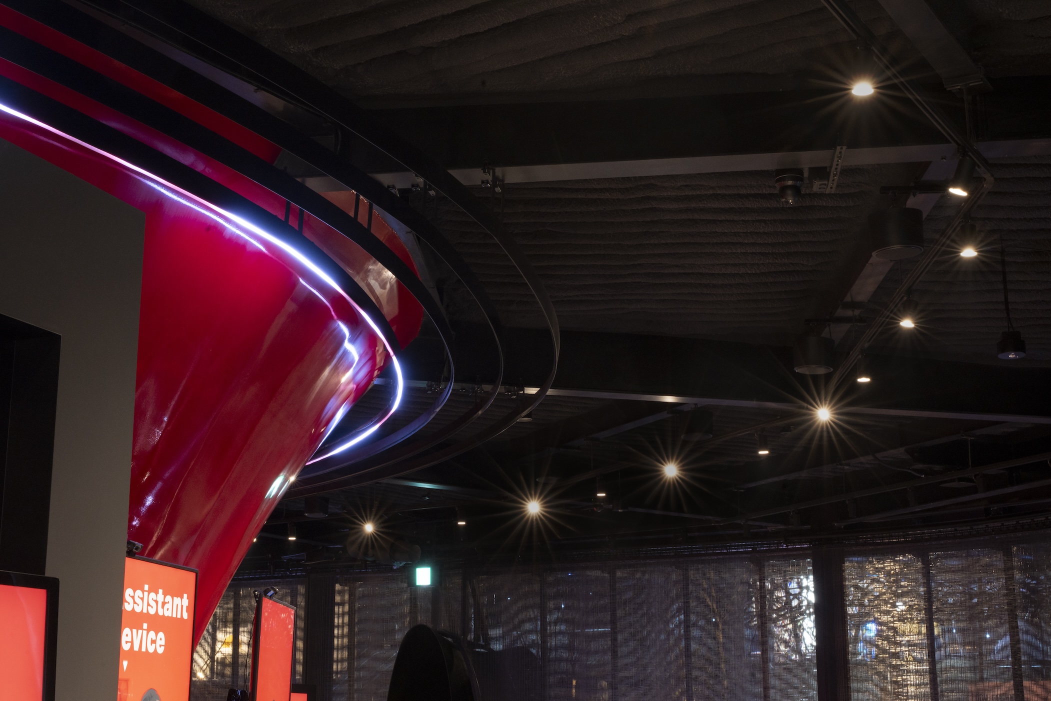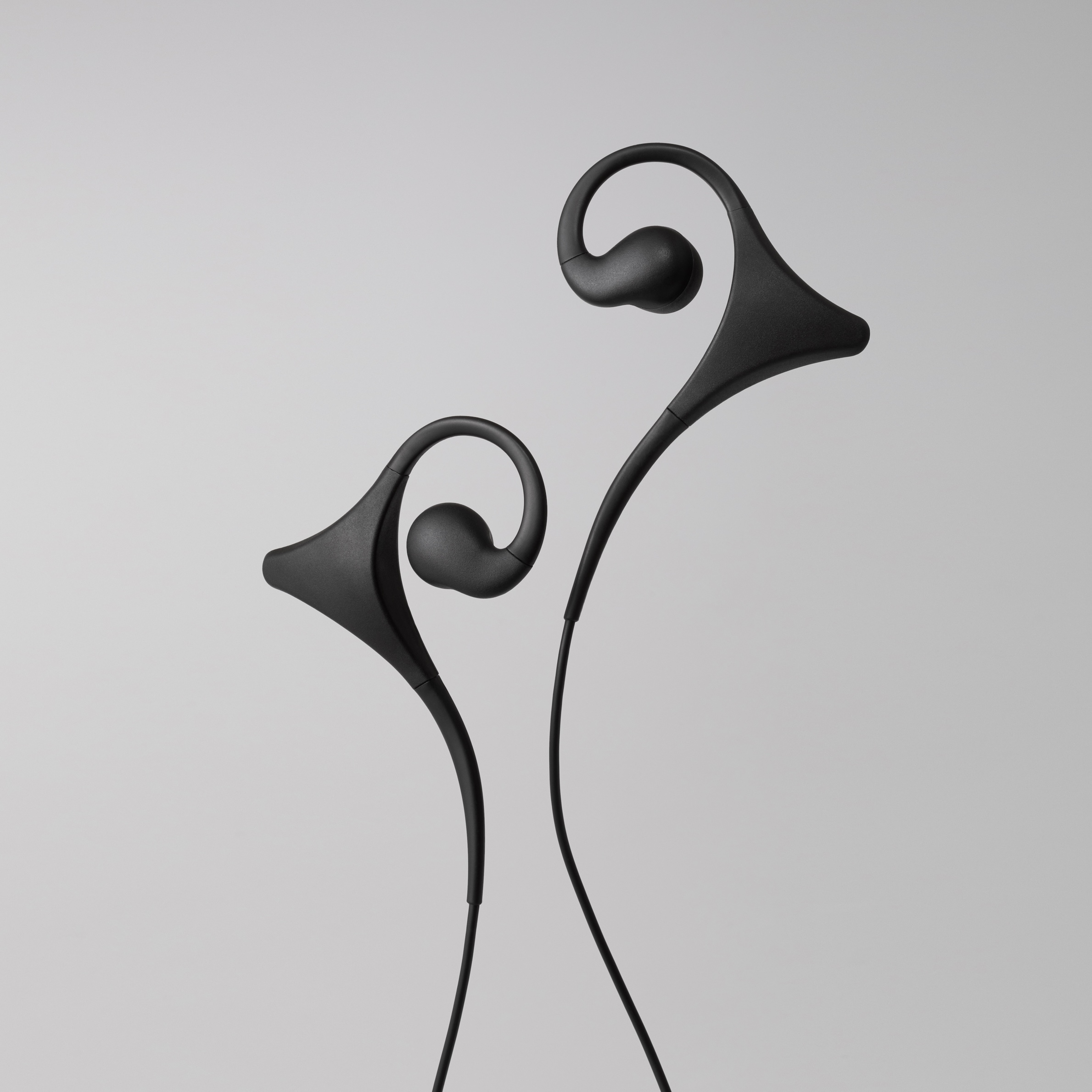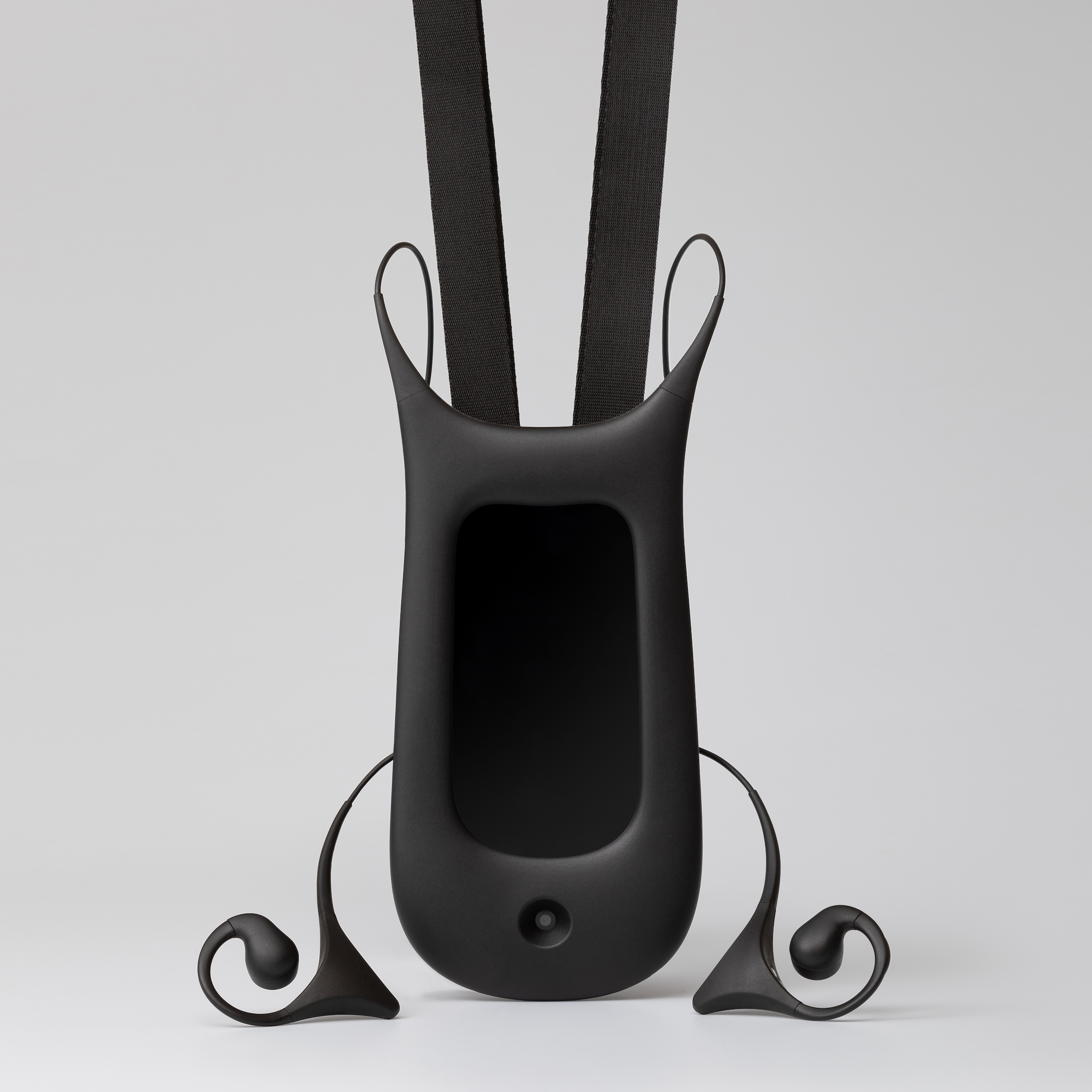 The earbuds visitors use in the pavilion are a new type combining bone conduction speaker units and vital sign sensors. To expand human hearing and sensing technology, we designed them as a small open earbud type that produces clear sound amidst a noisy background environment while allowing users to continue hearing the sounds around them. The earbuds also function to sense the visitor’s physical state. The visual design concept is intended to invoke the feeling of a ‘new sensory organ’, a metaphor for these earbuds’ enhanced hearing experience.