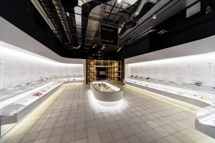The EARTH FOODS exhibit is made up of three elements: an introduction to 25 ingredients and food products, packaging design proposals for those 25 items, and concept dishes created by five chefs using the 25 featured foods.
