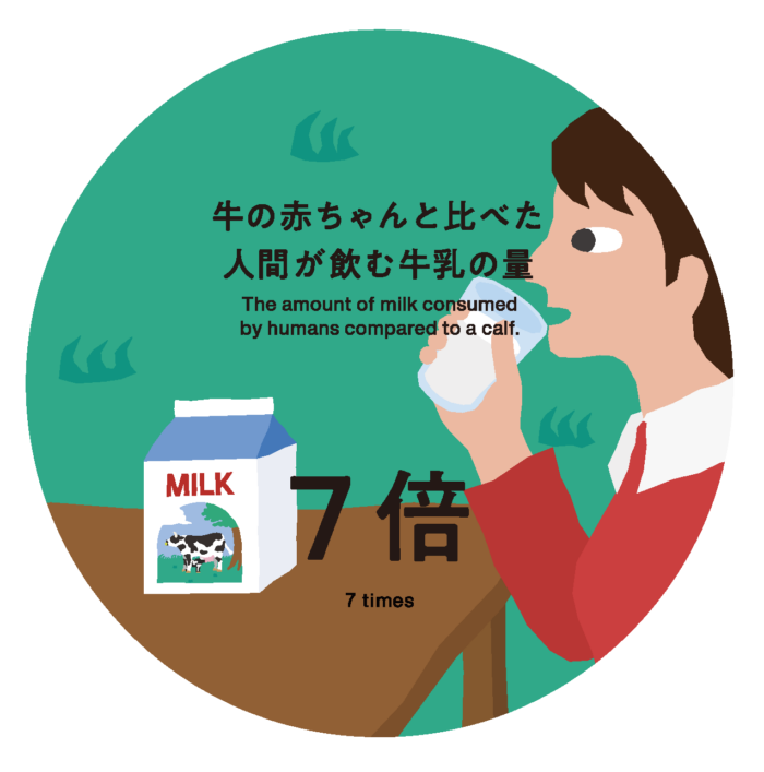 A baby calf drinks 360 liters of milk during the first 2 months of its life. In comparison, humans (in the case of Japanese people) consume about 2,600 liters of milk in their lifetime. Throughout our lives, we are continuously blessed with the precious gift of life from cows.