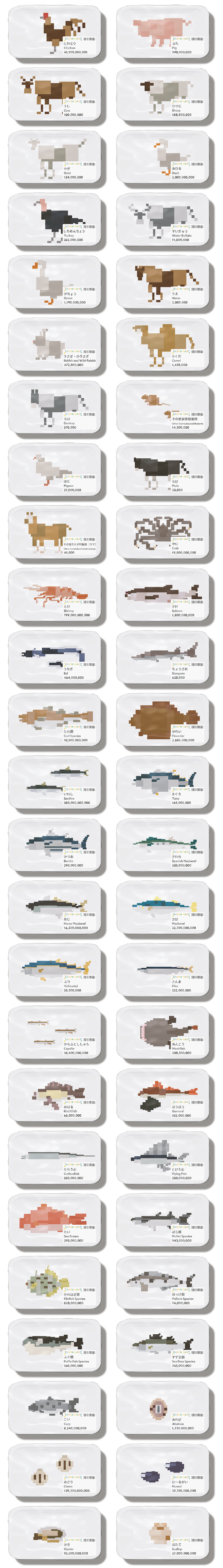 Compared to other omnivorous animals, humans consume an overwhelming variety of foods- said to be in the tens of thousands.What is displayed here is just a small fraction. We are supported by this vast diversity and number of lives.