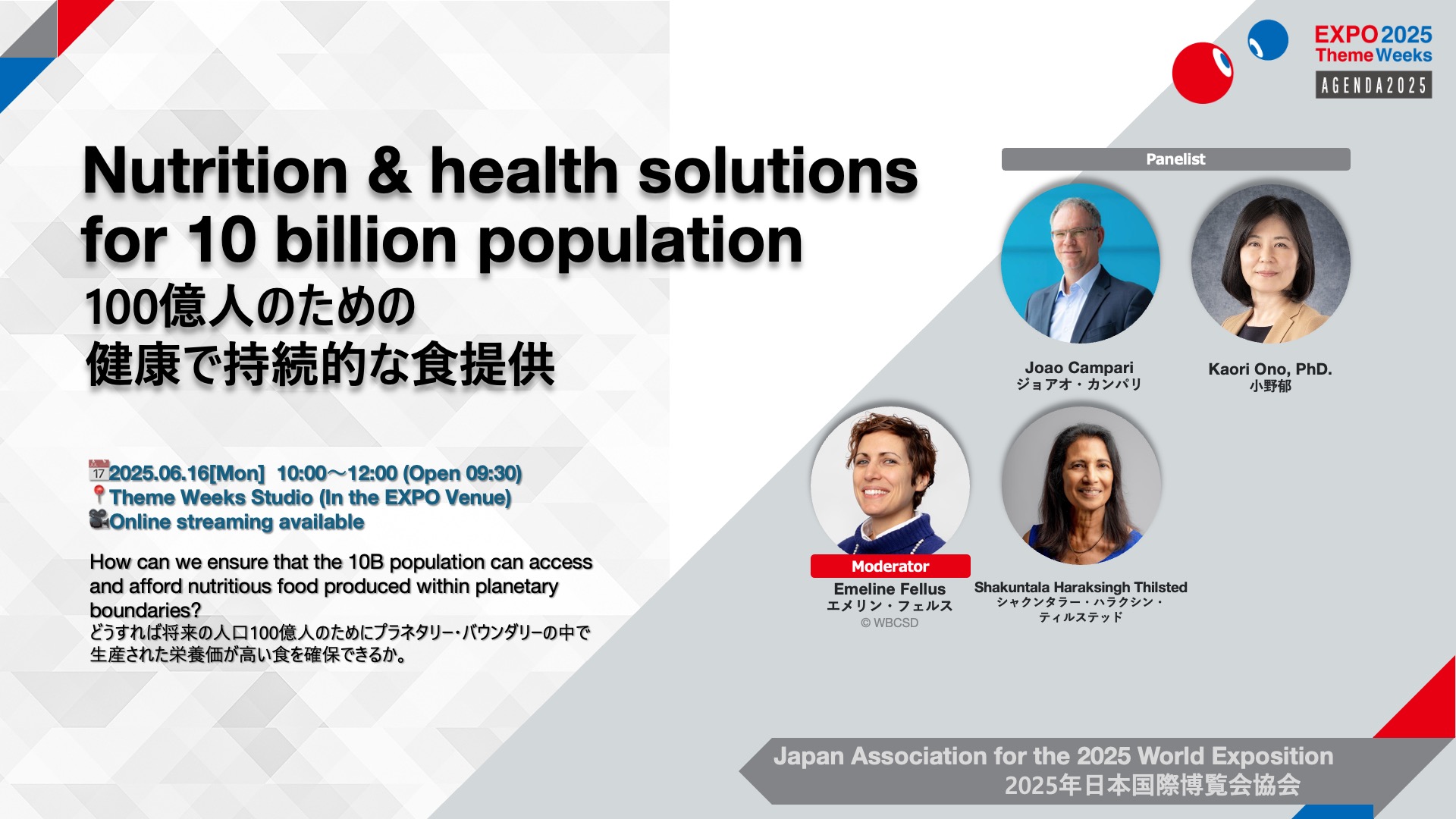 The programme, together with the General Sponsors, explores: 'How can we ensure that the 10B population can access and afford nutritious food produced within planetary boundaries?'