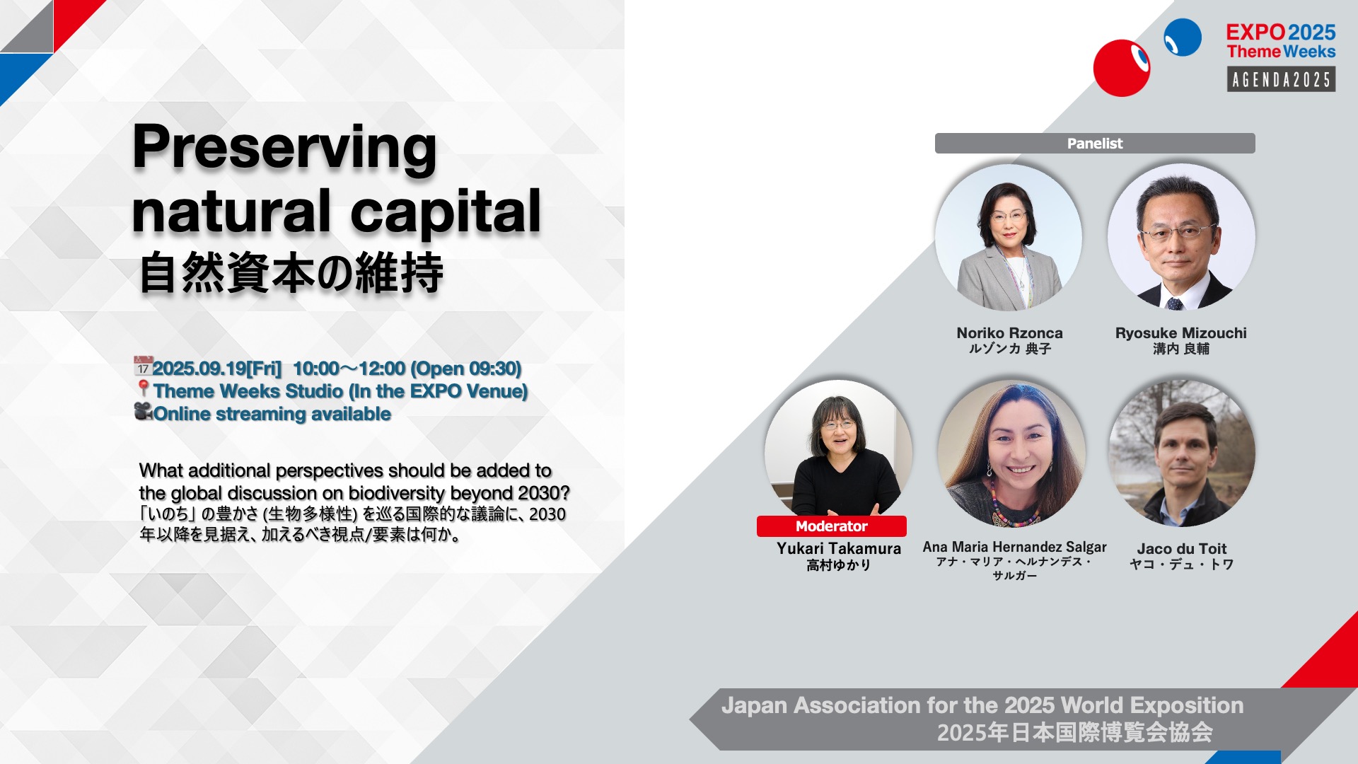 The programme, together with the General Sponsors, explores: 'What additional perspectives should be added to the global discussion on biodiversity beyond 2030?'