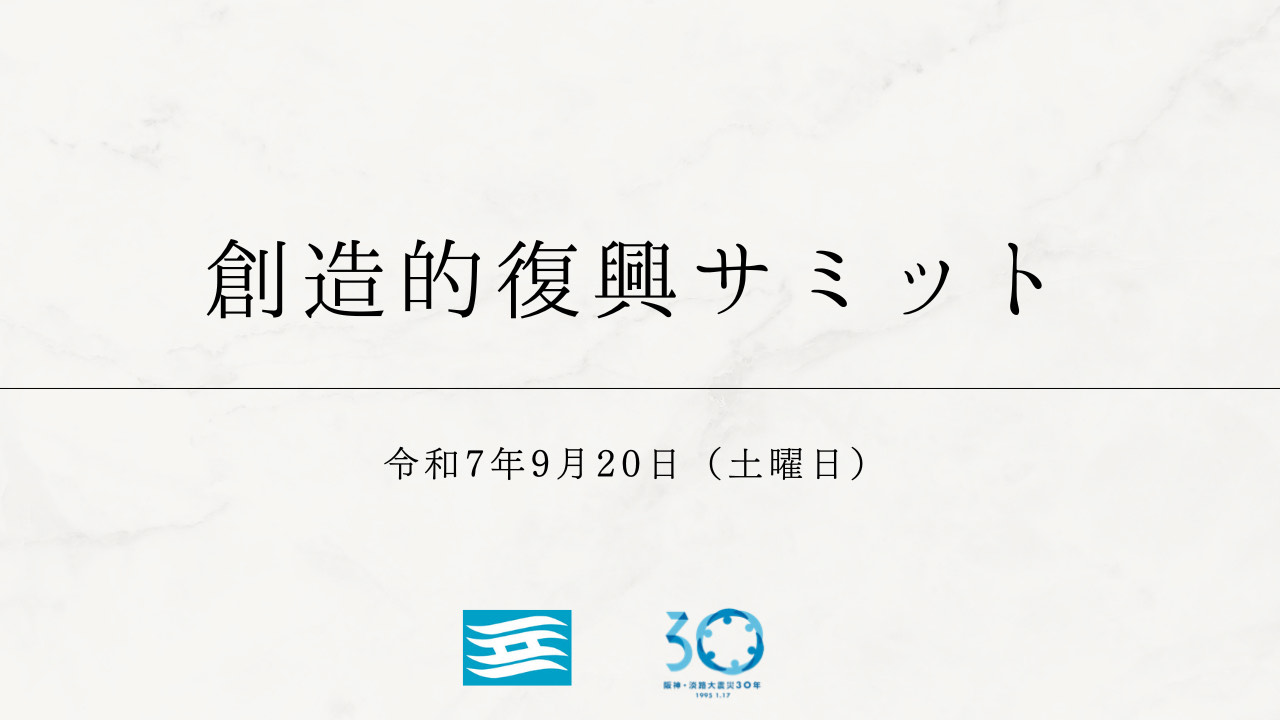 The year 2025 marks the 30th commemoration of the Great Hanshin-Awaji Earthquake, and in order to share the philosophy of "creative recovery" from the disaster in Japan and overseas, pass it on to the next generation, and prepare for the next disaster, we will hold the "Creative Reconstruction Summit" in cooperation with disaster-stricken areas in Japan and overseas.