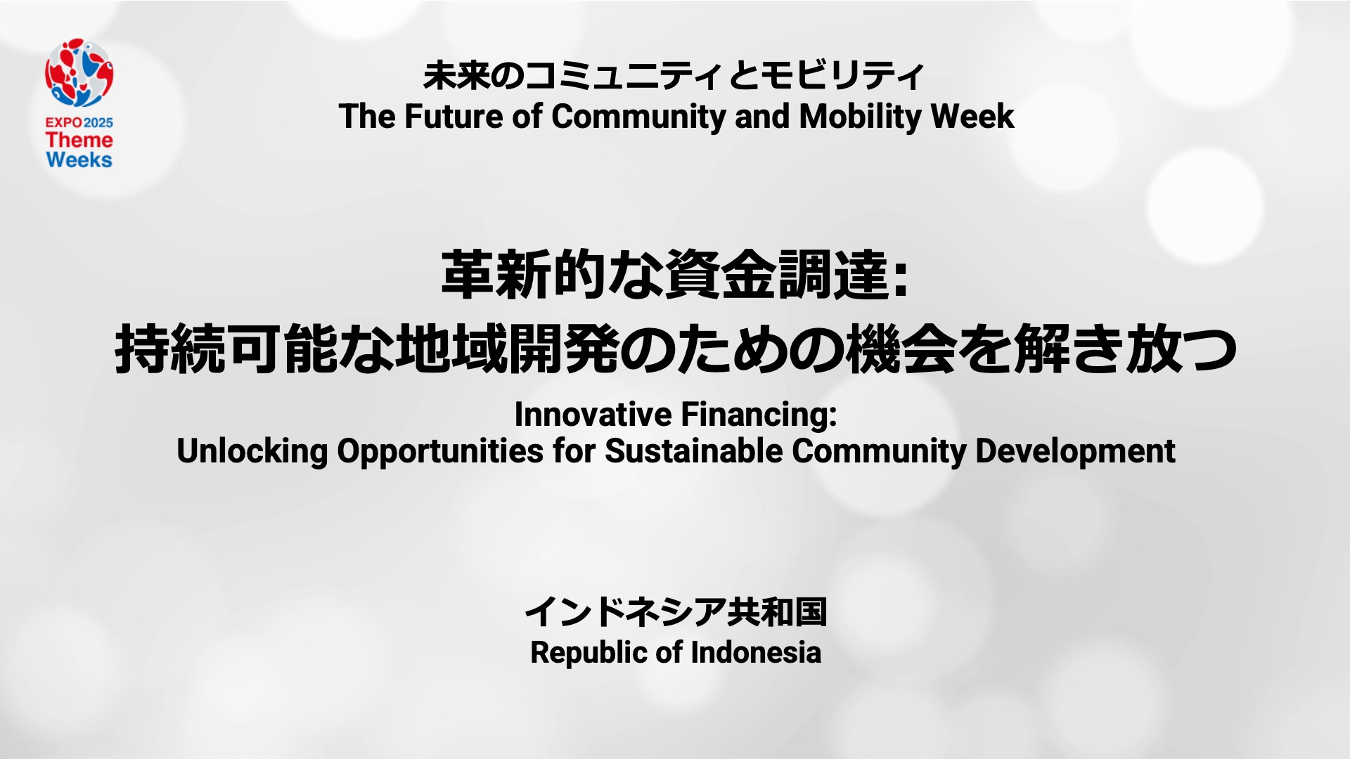 This business forum will explore Indonesia’s innovative financing models for sustainable community development. Key topics include optimizing regulatory and institutional frameworks to support financing innovation, examining fiscal strategies and incentives for sustainable community projects, and leveraging public-private partnerships for community infrastructure. The discussion will also address government guarantees to enhance financing schemes and the role of financial supervision in enabling cross-border financing. Insights will be shared on how Japan supports Indonesia's sustainable growth through innovative financing mechanisms, highlighting successful collaborations that benefit local communities.