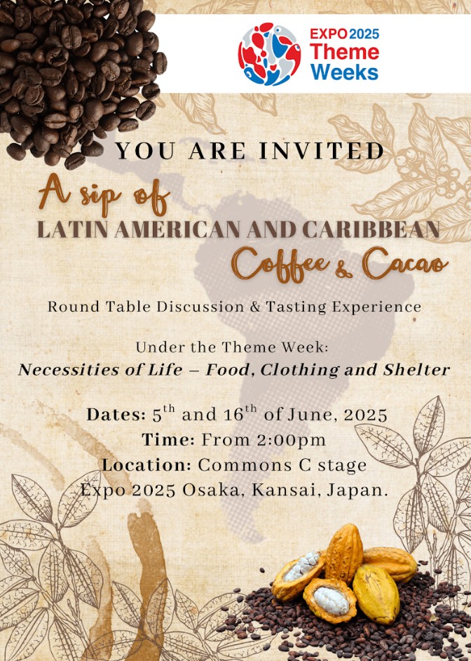 As part of Expo 2025 Osaka, Belize, Bolivia, Cuba, Columbia, the Dominican Republic, Guatemala, Panama, and Peru will unite to celebrate the cultural and economic significance of coffee and cacao. This immersive event will feature guided tastings, sustainable innovation, and economic insights. Visitors will explore unique varieties shaped by each nation’s altitude, soil, and tradition—from Panama’s aromatic highland beans, Guatemala’s rich, full-bodied blends, the bold and concentrated flavor of Cuban coffee, to the Dominican Republic’s vibrant plantations, and Bolivia’s heritage wild cacao. Highlights include Belize’s velvety Criollo cacao and Peru’s silky, rich varieties. Every sample tells a story of craftsmanship, culture, and flavor, showcasing the vibrant essence of Central America, the Caribbean, and South America.