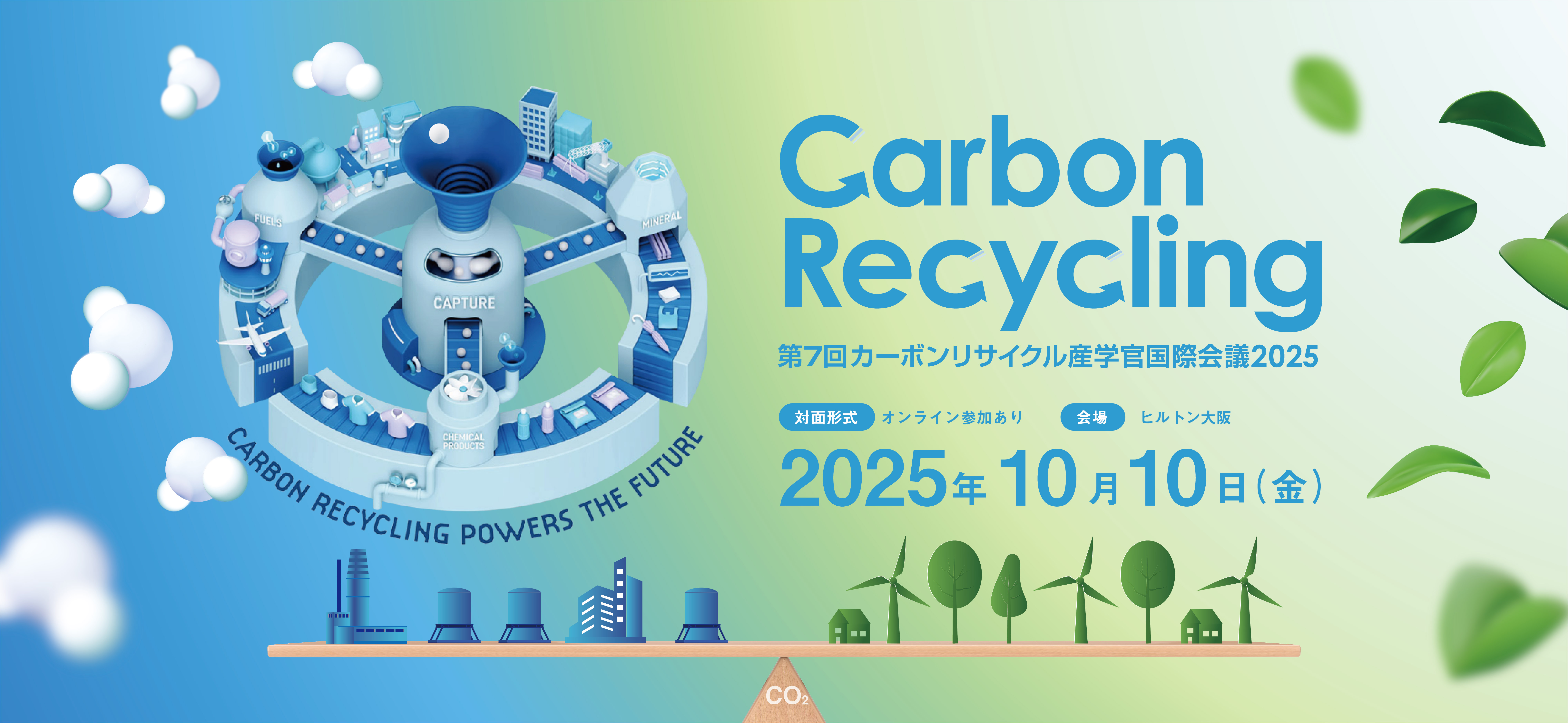 The 7th International Conference on Carbon Recycling, to be held for the first time in Osaka, will bring together stakeholders from industry, academia, and government. Participants will confirm the initiatives of each country in connection with technology development/demonstration toward the future social implementation of Carbon Recycling, which is a key to achieving carbon neutrality. The conference will also discuss ways to strengthen international cooperation among countries. On the day of the event, we will also hold a poster session and provide opportunities for networking (limited to in-person participants at the actual venue), so please take advantage of these opportunities for interaction. We are looking forward to seeing everyone there!