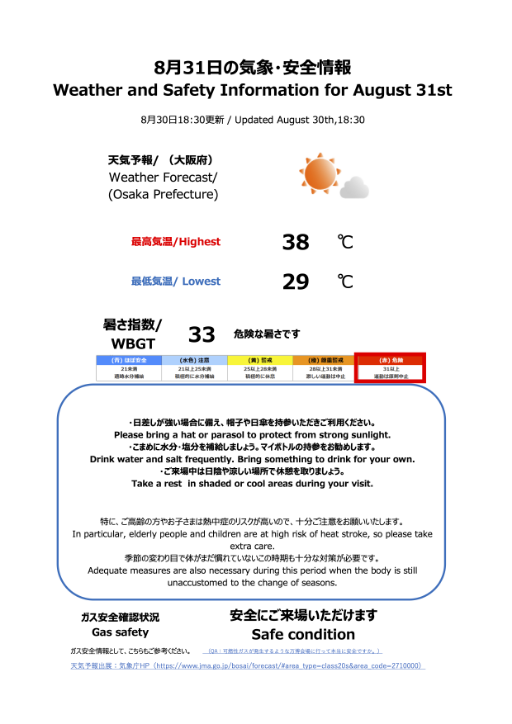 | EXPO SAUNA | 954 | 13,356 | “TAIYO’s TSUBOMI” (6 times per day) |