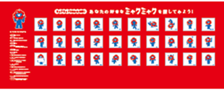 A range of MYAKU-MYAKU with various expressions will be displayed. Visitors can enjoy an interactive experience with a trick that uses “flash prints,” which change colour when photographed with the camera flash.