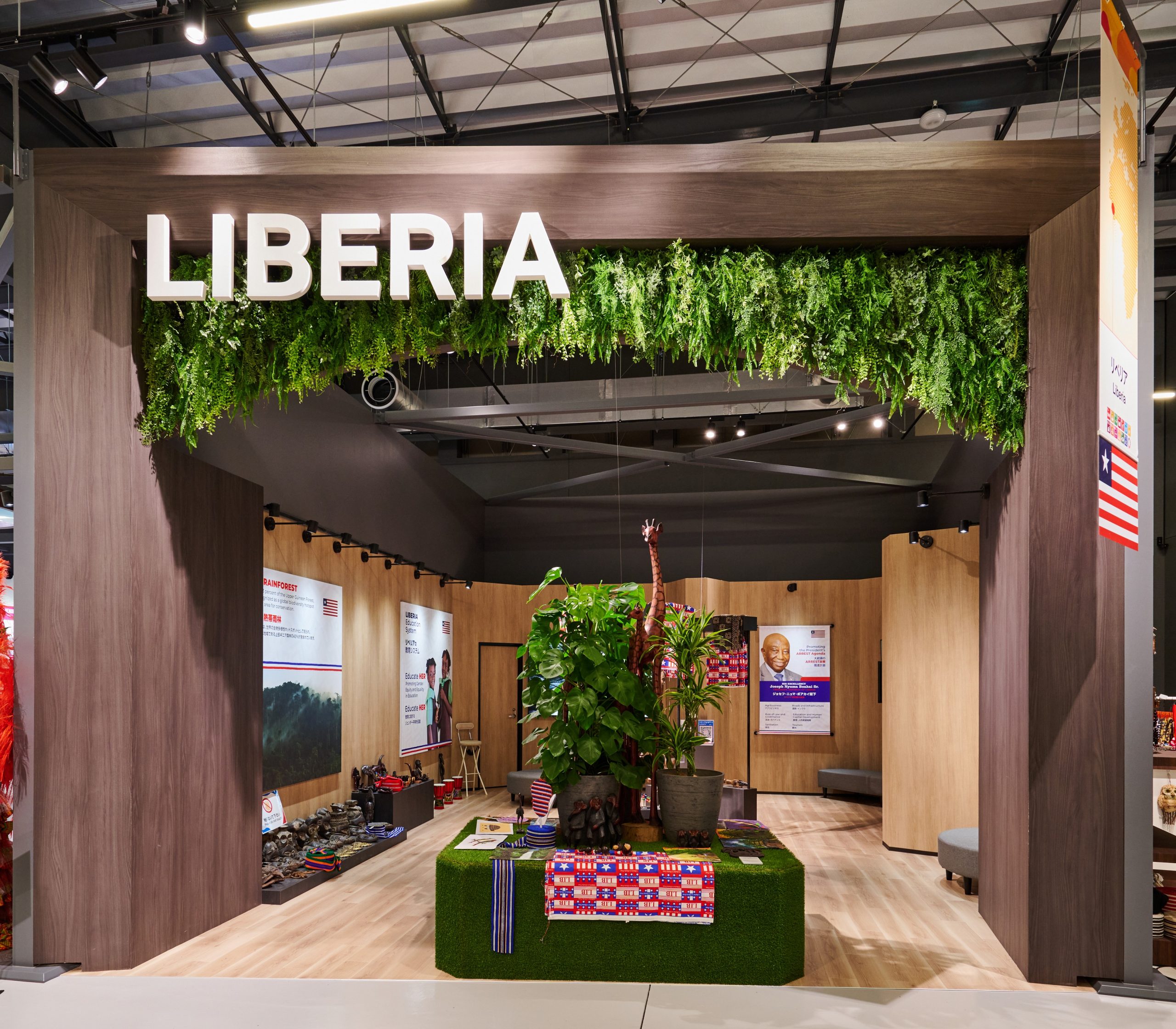 The Liberia Pavilion showcases videos and photographs featuring interviews with Liberian women who
