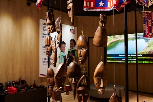 The Liberia Pavilion showcases videos and photographs featuring interviews with Liberian women who