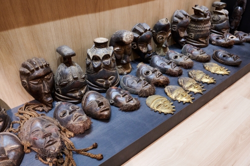 The pavilion also features a forest-inspired exhibit filled with wooden animals, tribal masks representing