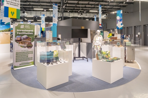 The pavilion of Saint Vincent and the Grenadines features the island’s scenery, landscapes, and