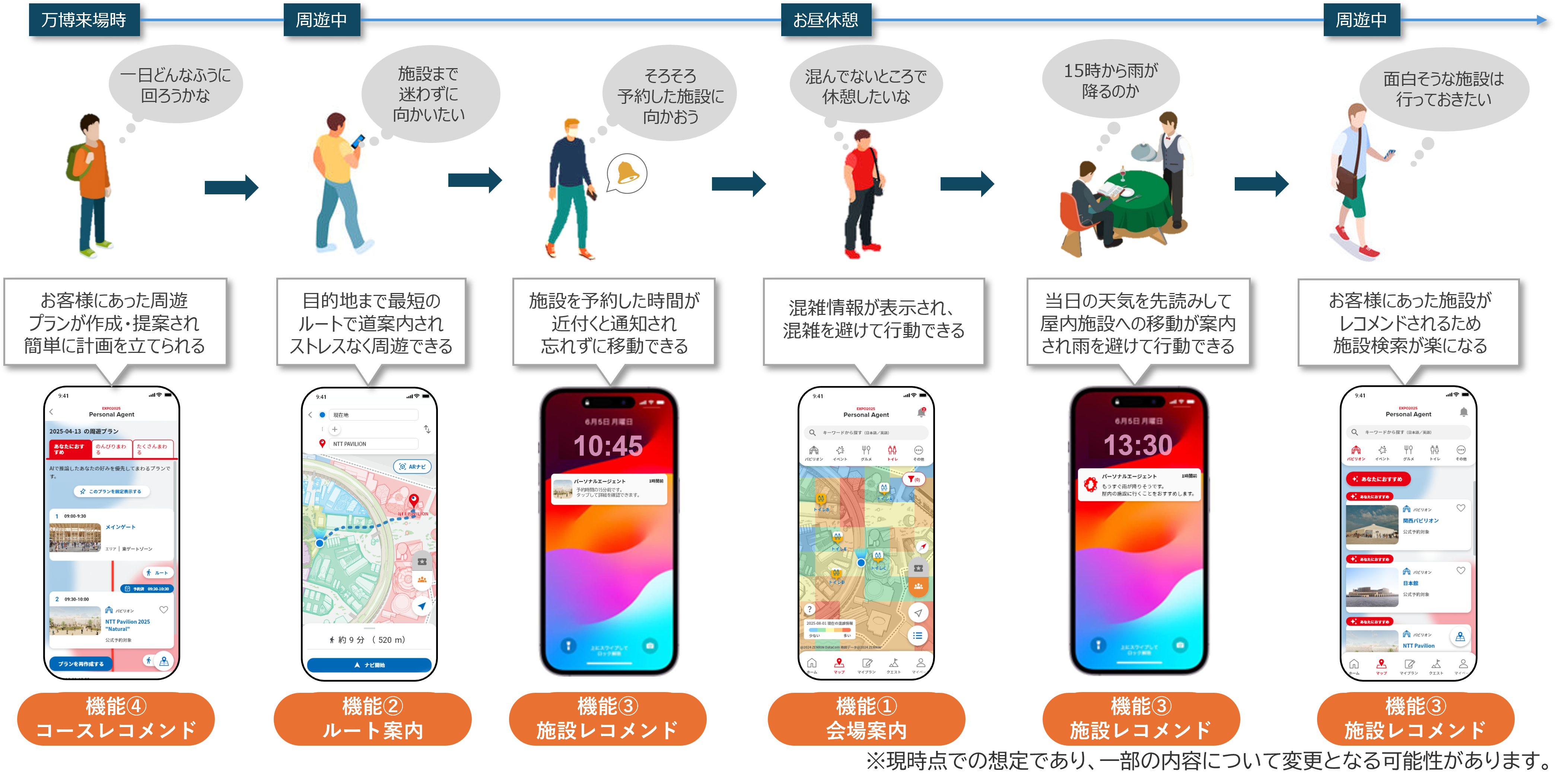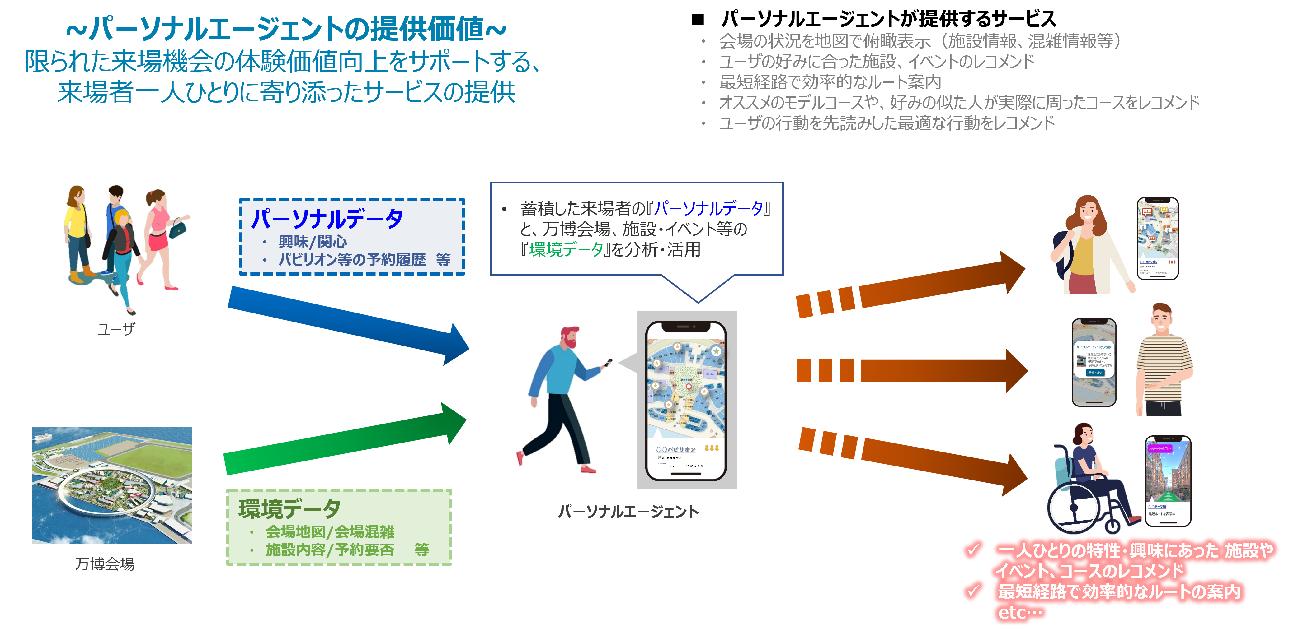 来場者のより快適な周遊に向けて提供されるサービスである。そのため、ユーザーの好みやニーズなどに沿って