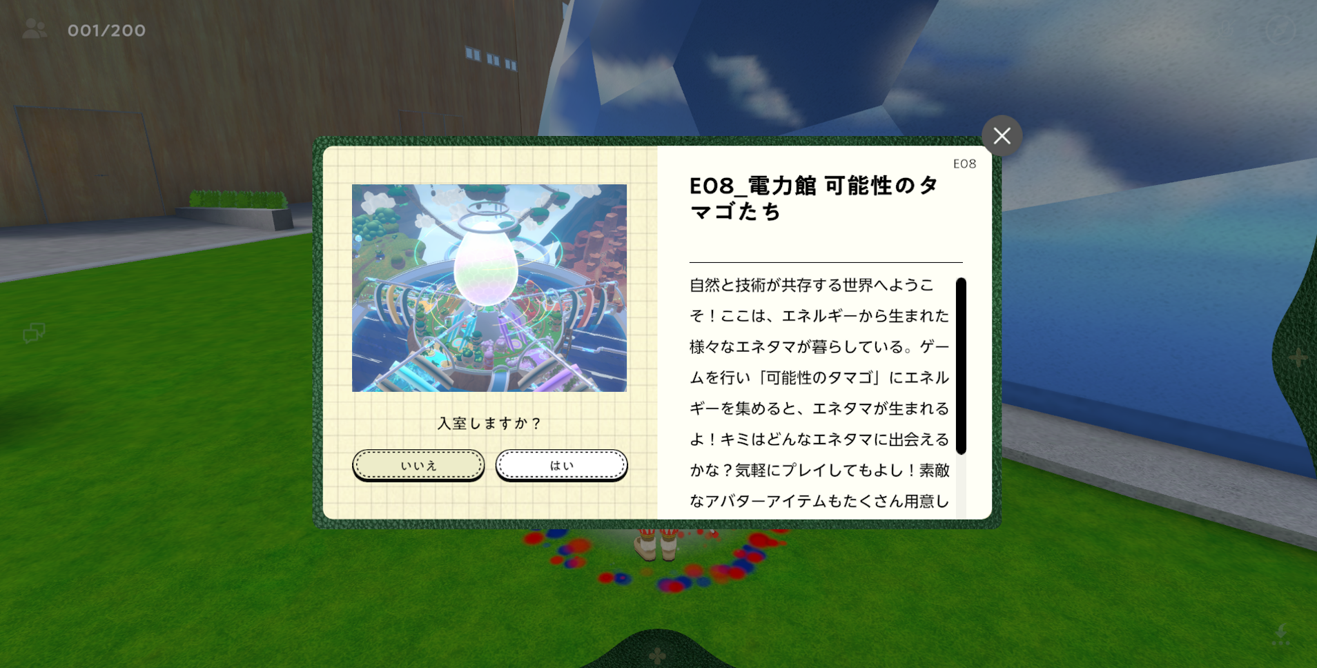 バーチャルパビリオン/催事場等の各施設の前に設置されたワープポイントに接触すると施設で展開されるコンテンツ等の説明情報が表示され、入場を選択するとユーザーは出展者が制作したバーチャルコンテンツを体験することが可能。