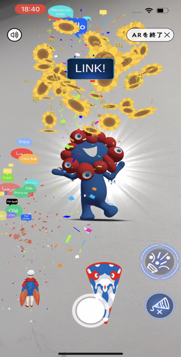 リアル会場のARマーカーや特定の場所でスマホのカメラを指定された場所に向けると現実の環境とデジタルの情報を融合させたARコンテンツの体験が可能。一部エリアでは、ARとVRが連動するイベントも実施。