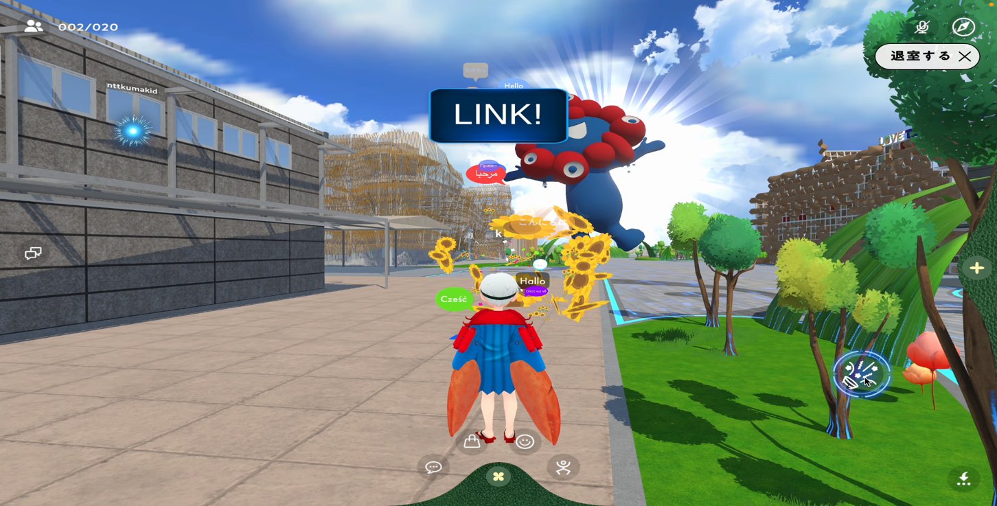 端末の操作によりアバターに特定のジェスチャーをさせることも可能。