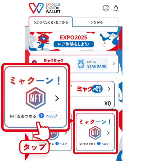 ミャクーン!をお楽しみいただくには、「EXPO2025デジタルウォレット」アプリが必要になります。まず、下記よりダウンロード、会員登録をしてから、ミャクーン!をお楽しみください。