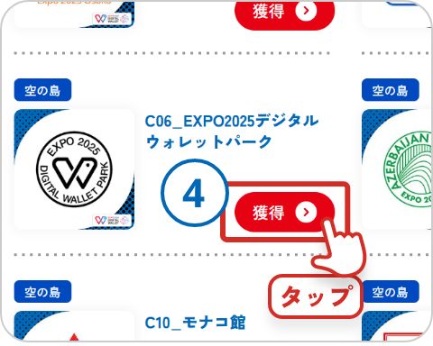4 訪問したパビリオンなどの施設を選んで、スタンプNFTを獲得!