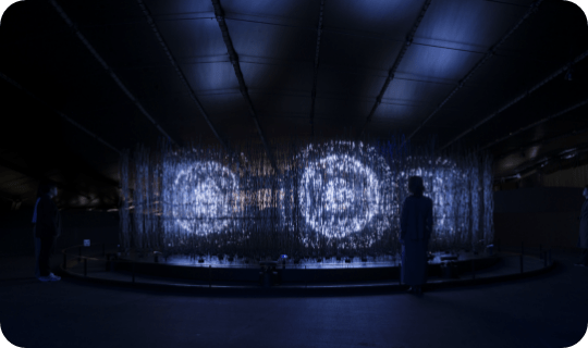 本展示は、生命の「動的平衡」を体感するインタラクティブな光のインスタレーションです。