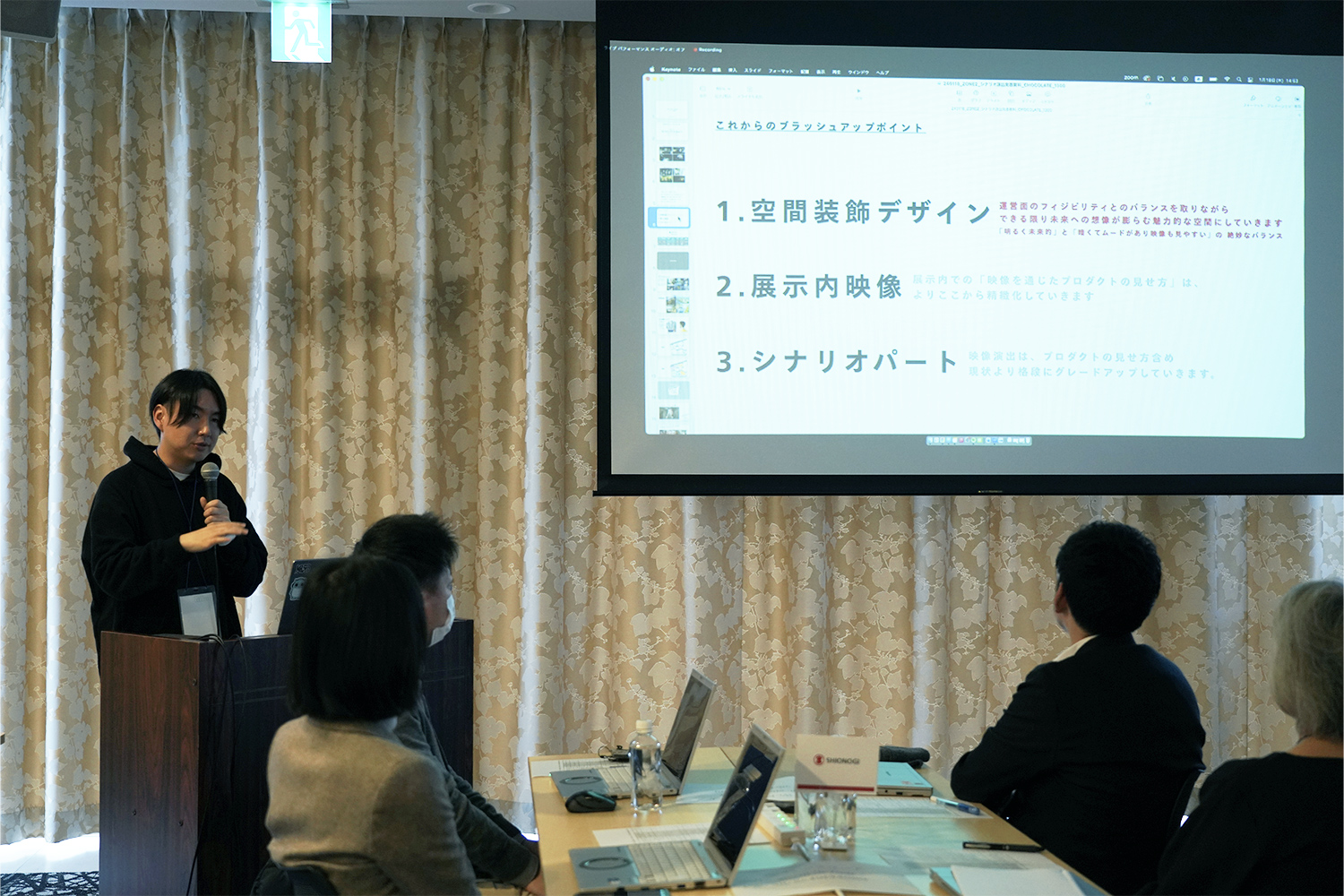 「共創企業の皆様からは、特にプロダクトの見せ方についてのフィードバックを多くいただきました。印象的だったのは、“来場者にどうやったらより伝わるのか”という、よりユーザー目線での意見が多く出たことと、自社のプロダクトが登場しない他社のエリアに関しても多くの意見が飛び交ったこと。どうすればこのパビリオンがよりよくなるのかを真剣に考えている皆様の熱量が伝わってきて、その思いに応えなければ、と強く感じました」