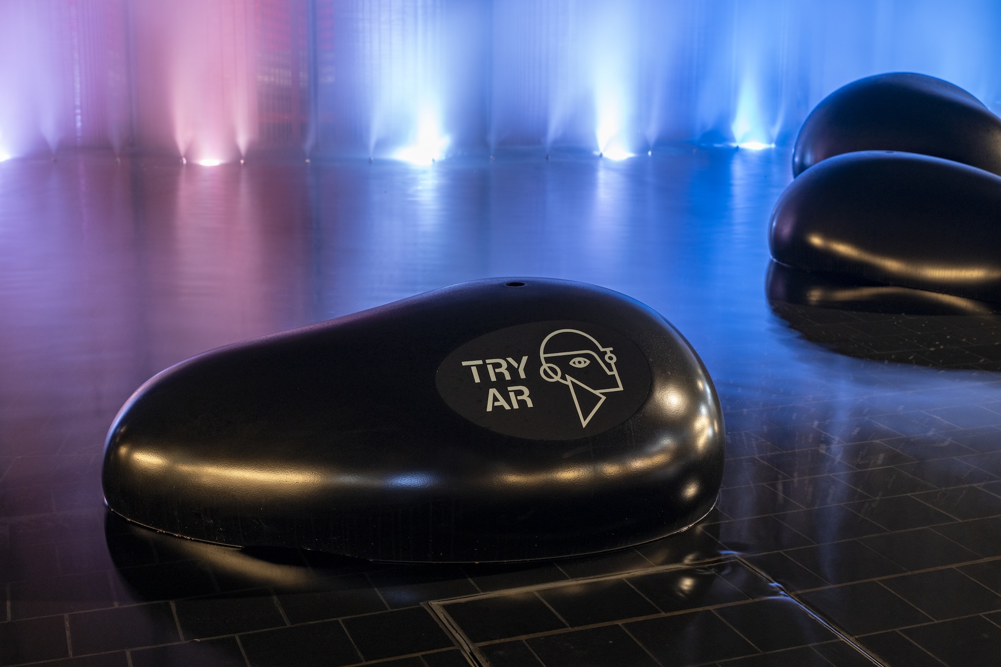 より感覚的に来場者が演出のコンセプトを理解し、「はかる」を身近に感じることができるように ARコンテンツを準備しました。バーチャル万博アプリを起動し、パビリオン周囲の水盤に設置されたARマーカーをアプリで読み取ると、不思議な体験が始まります。バーチャルの世界で貝殻、花、岩塩を水に入れてみましょう。水の性質と変化に応じて、パビリオンに美しい光のアートが現れる様子を、目の前でも体験できます。