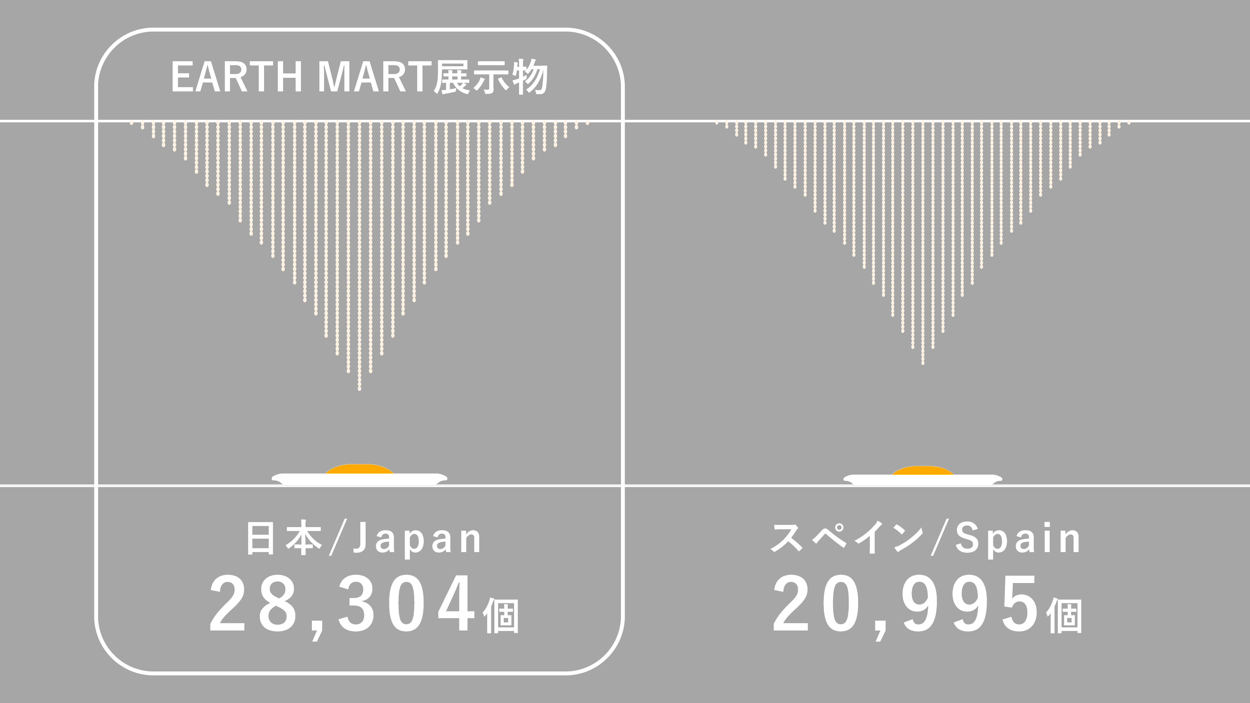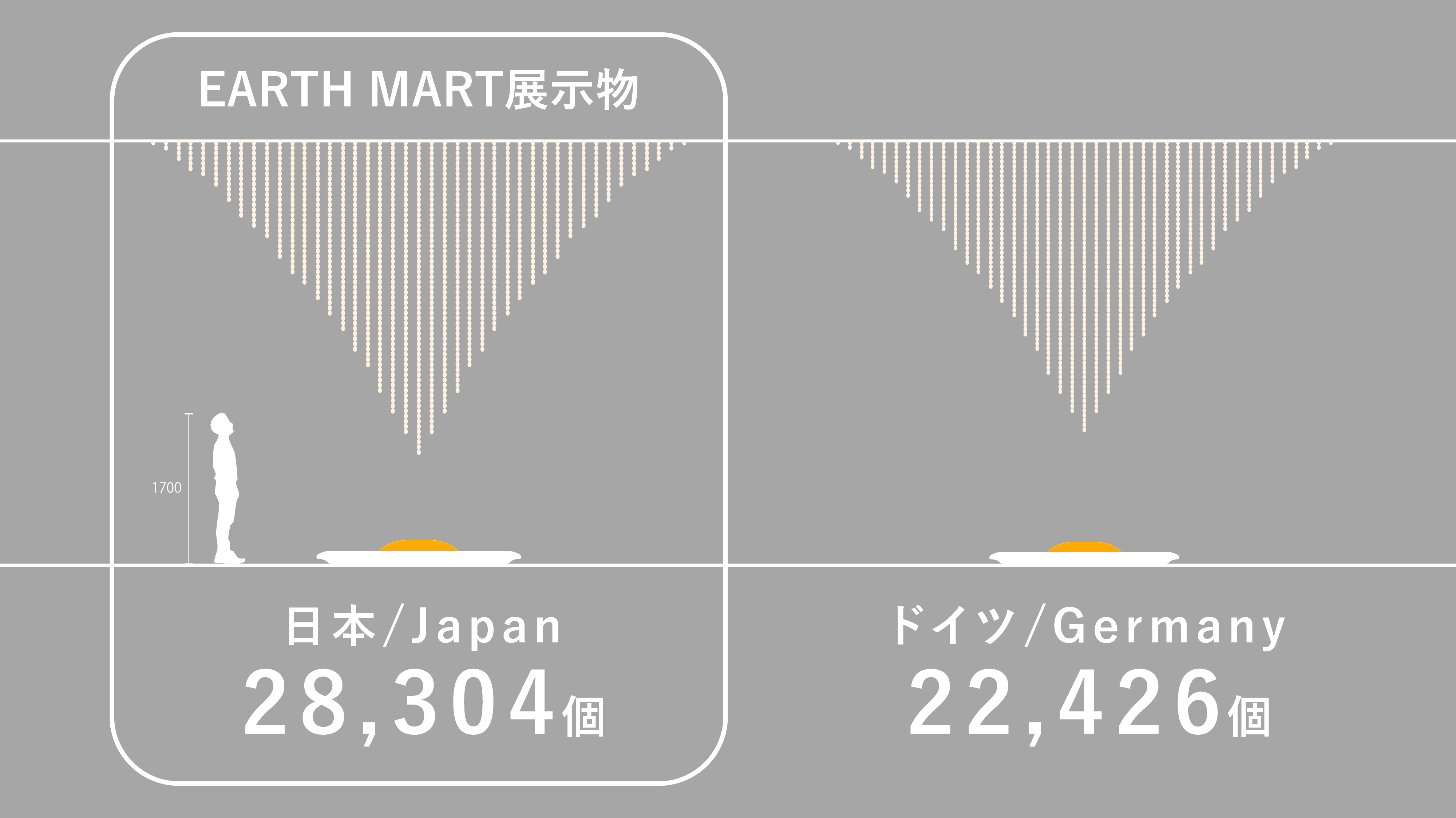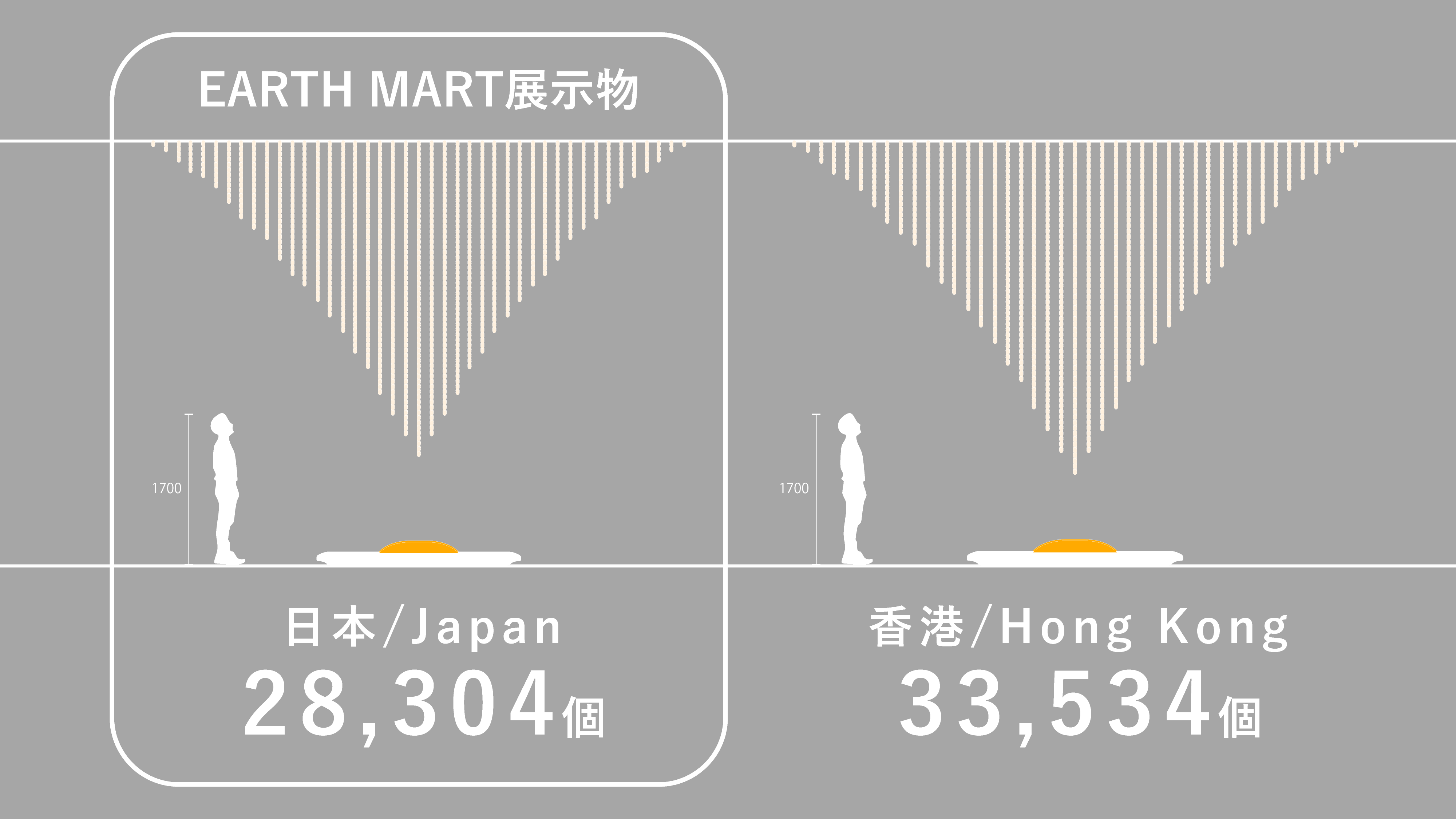 展示ではご紹介できなかった、世界中で食べられている一生分のたまごの数を表しました。
