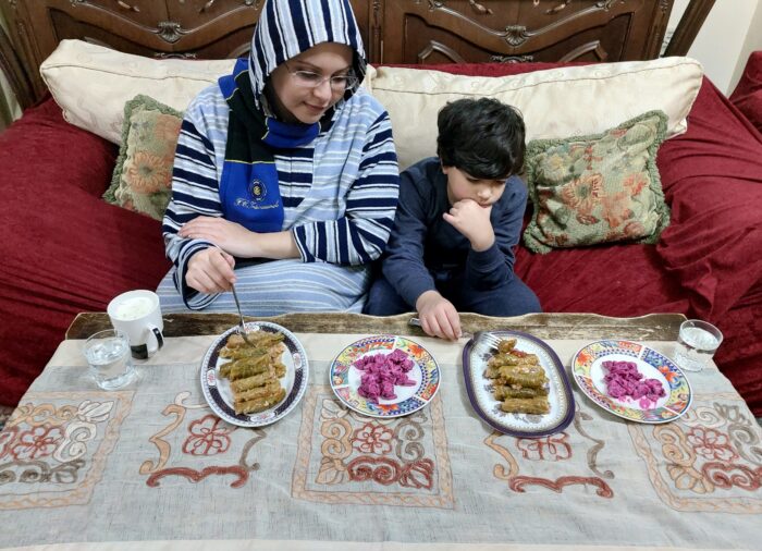 砂漠のピラミッドのイメージが強いエジプトですが、「ナイルの賜物」と呼ばれる肥沃な大地で、様々な種類の野菜や果物が育てられています。また、ナイル川の水を使った養殖も盛んです。エジプトでは主食である小麦、米の消費量が多く、その付け合わせとして様々な大皿料理を家族で囲みます。食事には、必ずと言って良いほど生野菜やピクルスが出されます。様々な豆を料理するのもエジプト料理の特徴で、空豆、レンズ豆、ヒヨコ豆が多く食べられます。サラさんのお気に入りは白花豆です。
