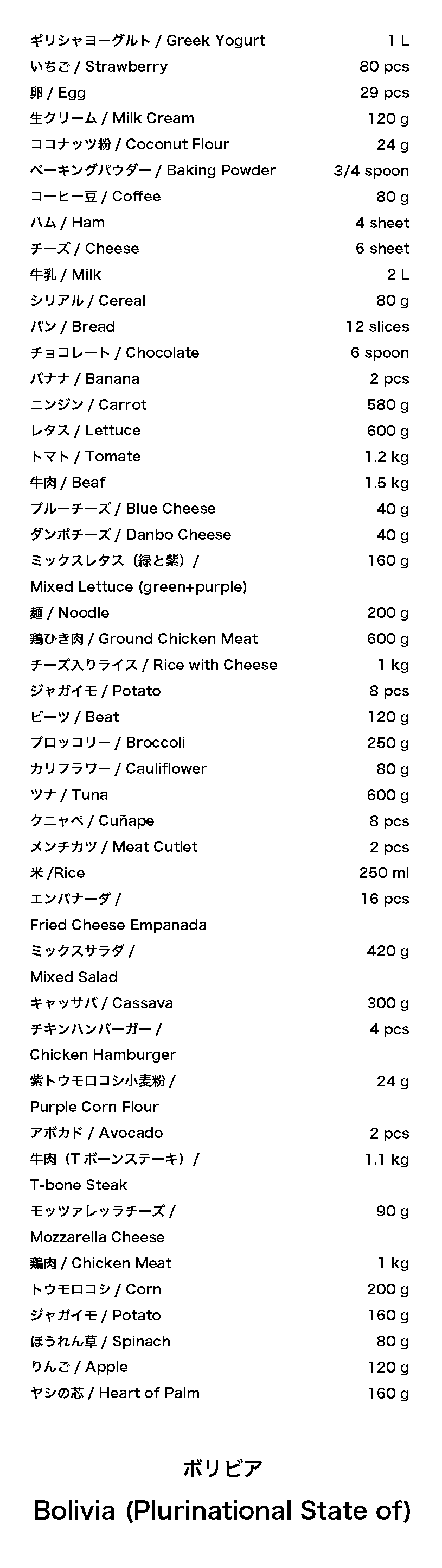 ボリビアはトロピカルな気候の平地から、寒い高地まで様々な気候の地域があり、そのため多くの種類の果物や野菜が育つ環境にあり、これら食品の摂取も多いことが報告されています。また宗教的な食の制限もなく、ラミロさんの食の多様性の豊かさにつながっているのかもしれません。ソパデマニ(ピーナッツスープ)はボリビアならではの料理で、生ピーナッツのクリーミーさと、お肉の風味から成るインパクトのある味わいが絶妙にマッチした、ボリビアの方のみならず、現地で生活する日本人にも愛される人気の一品です。ラミロさんの食事に魚類が出てこないのもボリビアが内陸国である特徴を反映しているかもしれません。