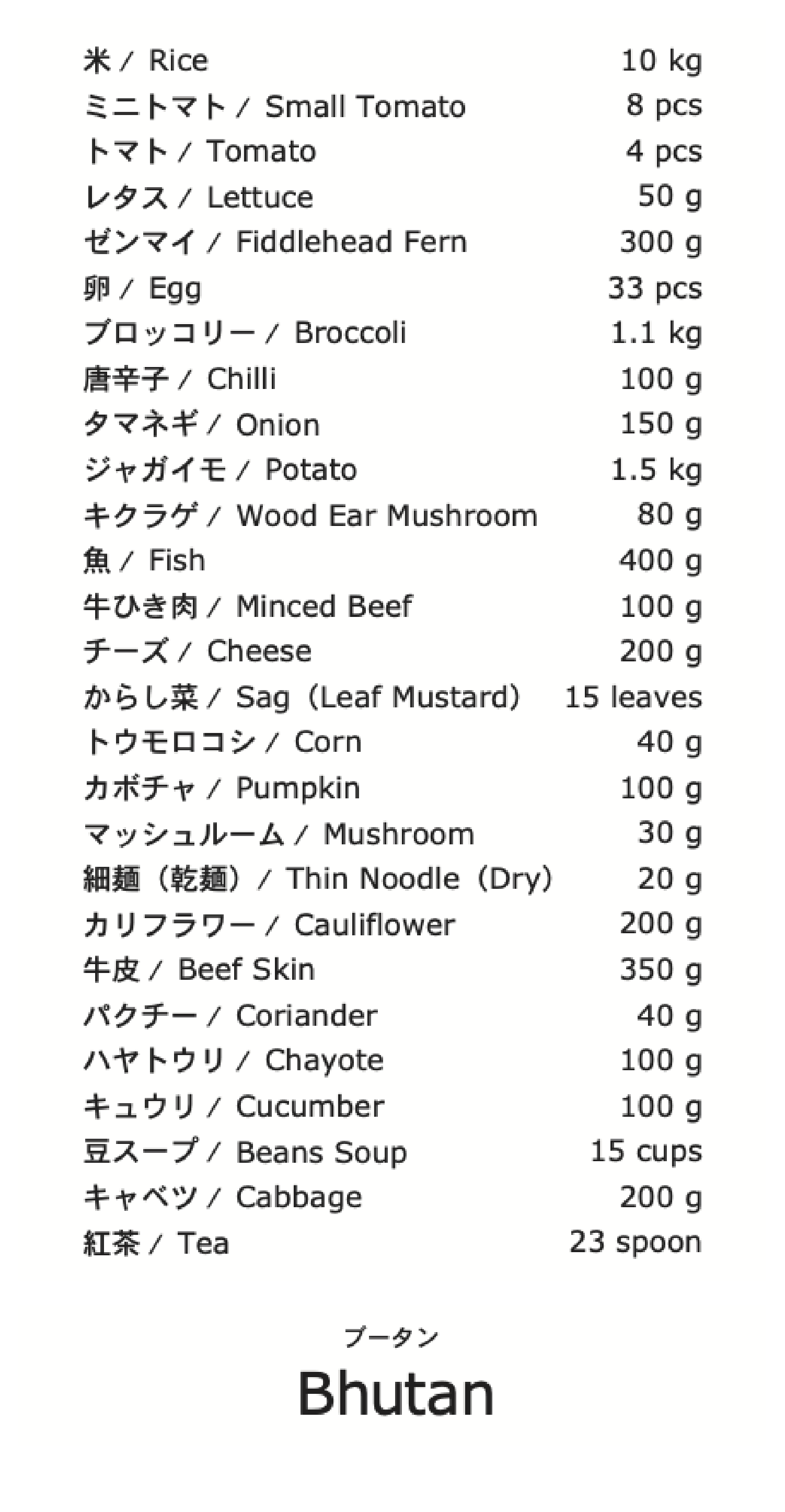 現代のブータンではお米がなければ食事になりません。唐辛子は食事に欠かせず、スパイスというよりも野菜として多食していることがジャムヤンさん宅の食事にも表れています。