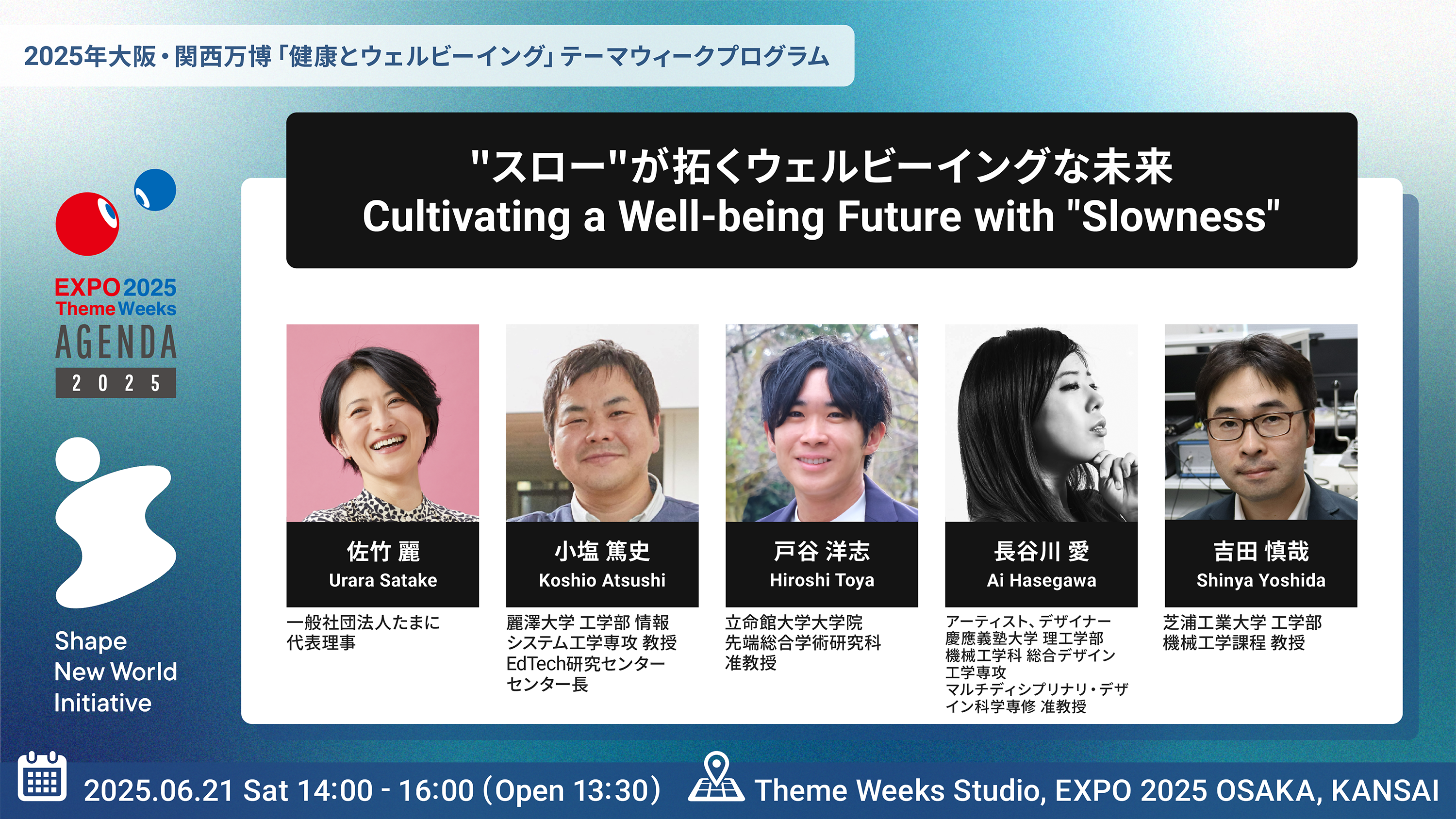 科学技術の進展により、健康寿命が大幅に延びることが予想されます。一方、社会の変化がさらに加速する中で、私たちは一世代の間に幾度もの大きな変容を、未だかつてない密度と振り幅で経験することになるでしょう。このセッションでは、2050年のウェルビーイングな社会のありよう、人間とテクノロジーの新しい関係性を、「スロー」を軸に探ります。