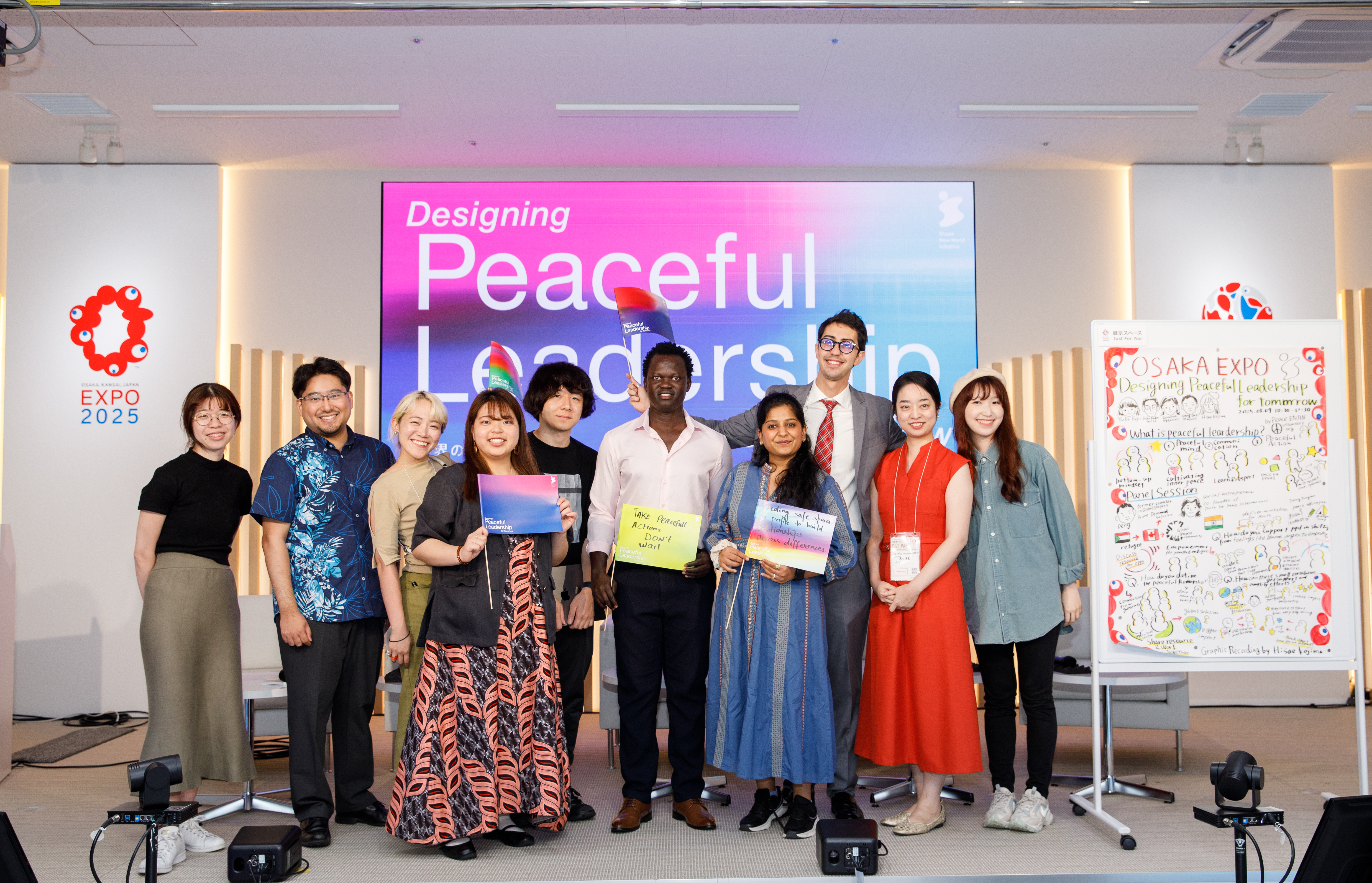本セッションを通じて、「ピースフル・リーダーシップは特別な立場の人だけのものではなく、一人ひとりが日常の中で体現できる姿勢である」という認識が共有されました。武力による抑止ではなく、対話や外交、ソフトパワーの重要性が改めて示され、平和は待つものではなく、行動によってつくっていくものだというメッセージが伝えられました。今後も、この対話と実践の輪が広がっていくことを期待します。