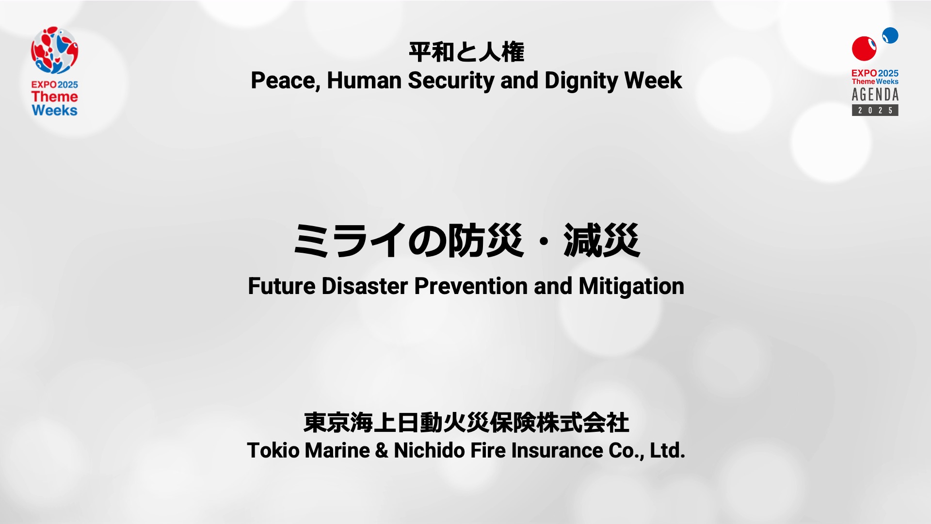 近年、気候変動による洪水や異常気象が増加し、自然災害対策が世界的に重要な課題となっています。日本は自然災害が多発する国であり、その経験と技術を活かして世界の災害対策に貢献できると考えています。大阪・関西万博を機に、東京海上グループは官民連携で最新のデジタル技術を活用した防災・減災の議論を深めます。