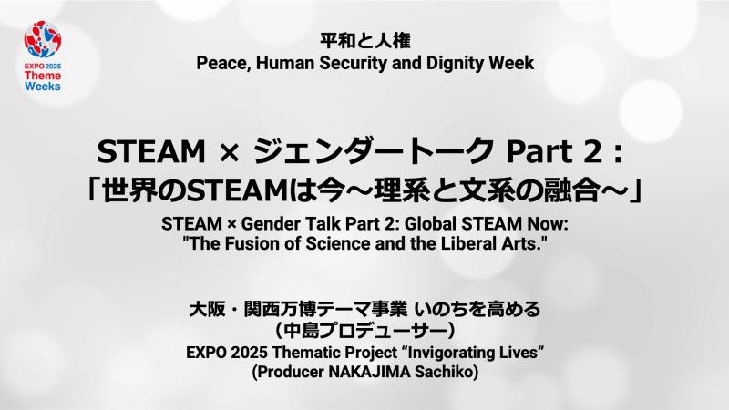 内閣府男女共同参画推進連携会議が行ったアンケート調査では、20~30代の男性の間で「職場では女性は男性をサポートすべき」という意識が依然として根強い一方で、女性では「非婚就業」を想定する割合が過去最多となるなど、意識のギャップや変化が浮き彫りになりました。こうした実態について本プログラムにおいて、有識者が考察を行い、若年層の意識の背景や要因を多角的に読み解き、多様な参加者と現状と課題の共有ができました。また、関西・大阪版におけるテーマウィーク事業として広く内外に発信することができました。今後、こうした成果を踏まえ、性別に関係なく多様な生き方を選択できる社会を実現するため、日本における女性活躍の推進にかかる取組を更に加速していきます。