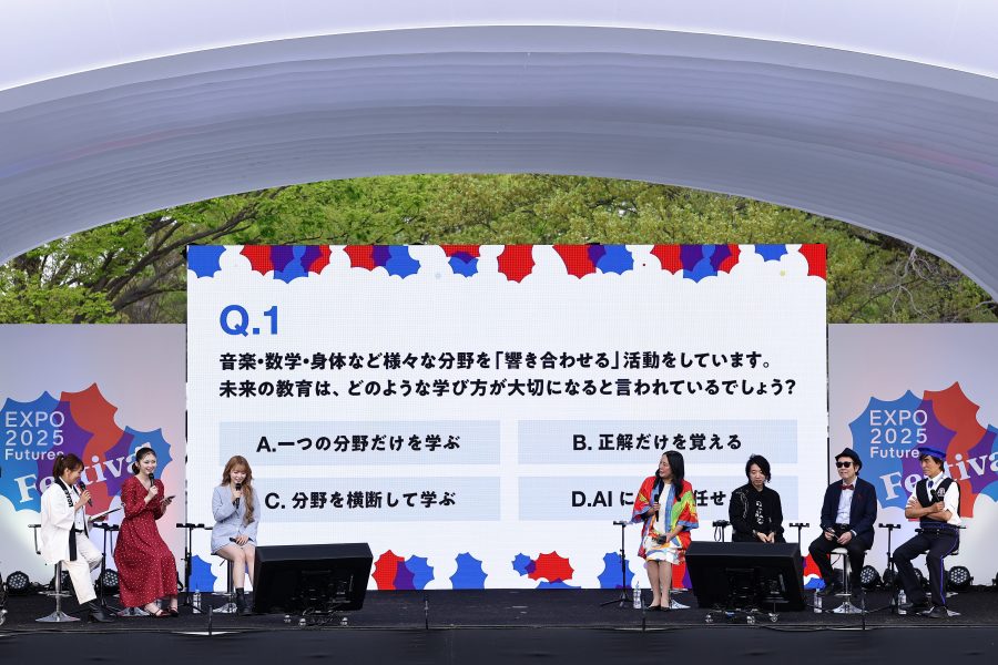 大阪・関西万博テーマ事業プロデューサーと大阪・関西万博 スペシャルサポーターのゆうちゃみさん、ゆい小池さんらが登壇し、会場参加型のクイズ企画を行いました。