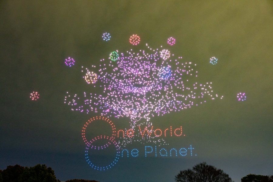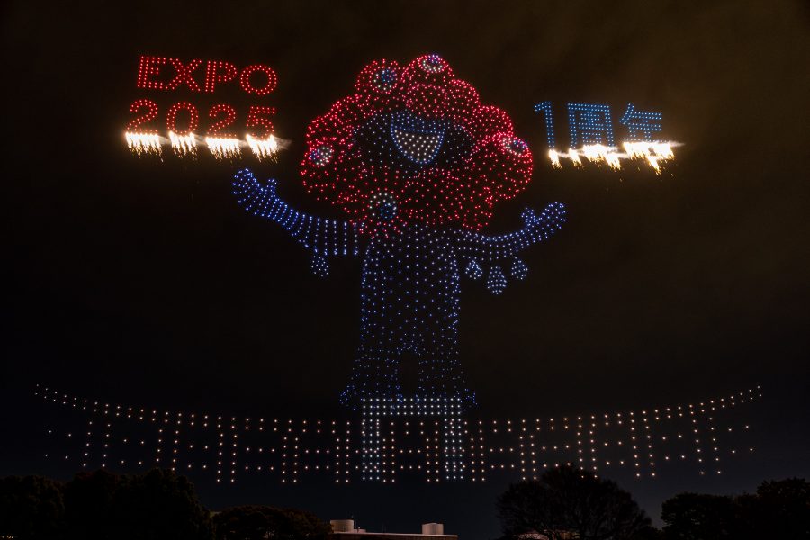 そして、イベントの最後には会期中の夜空を彩った「One World, One Planet.」のドローンショーが特別版として一夜限りで復活しました。約3,000機のドローンを使用した演出では、万博最終日に登場した巨大ミャクミャクと夢洲万博会場のシンボル大屋根リング、そして大人気であったEXITの表示がサプライズで出現しました。