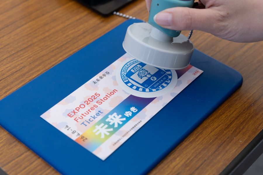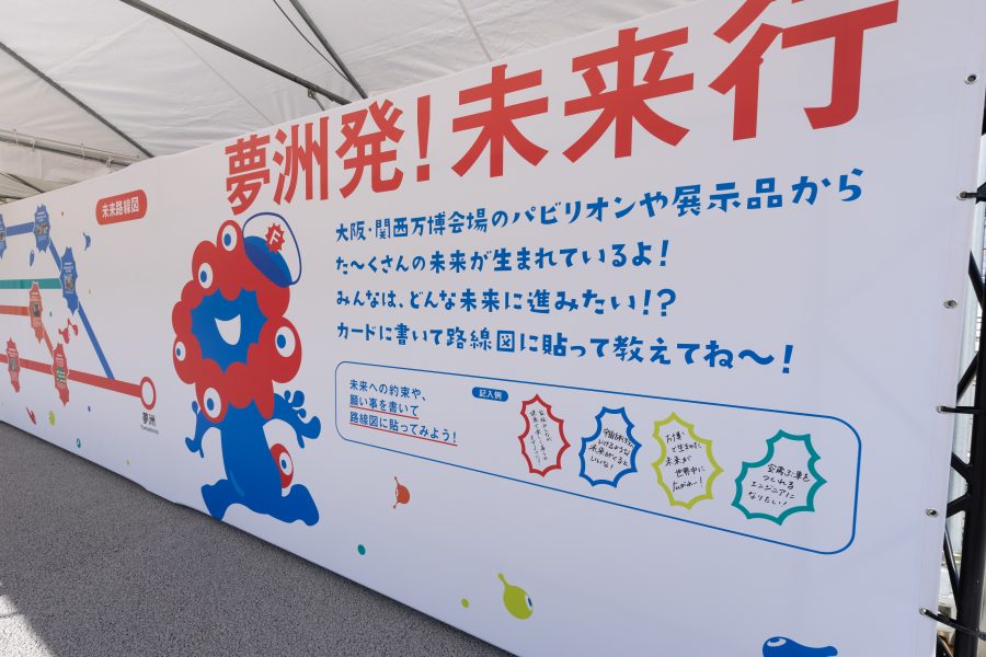 未来へ出発するミャクミャクをモチーフにした駅看板から始まり、大阪・関西万博を振り返る写真や万博で生まれた技術や取り組み、未来社会に向けたプロジェクトを紹介したほか、参加者が進みたい未来を書いてボードに貼り付ける企画展示などを実施。また、イベント参加の記念として、切符デザインの台紙に押印できるオリジナルスタンプも設置しました。7日間の期間中に約23,000人が来場しました。
