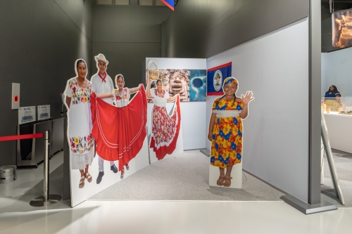中央アメリカのユカタン半島の付け根に位置するベリーズは、世界第2位の規模を誇るサンゴ礁のベリーズ・バリア・リーフやマヤ遺跡で有名です。過去と現代が溶け合うパビリオンでは、古代のマスクや花器、彫刻の展示を通してマヤ文明の魅力を紹介します。没入型の映像は、活気ある現代文化と観光業の今にフォーカスします。