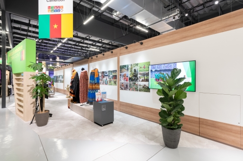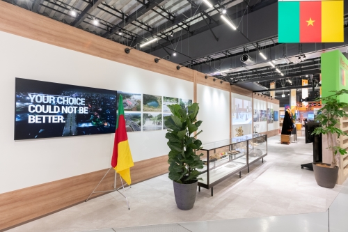 アフリカ大陸中央部に位置し、多種多様な気候帯や自然環境、動植物が見られ、さらに250以上の民族が暮らすことから「アフリカの縮図」と呼ばれています。また、近年はアフリカを代表するサッカー強豪国のひとつとして有名です。パビリオンでは「生活条件の改善」「気候変動の影響に対する対策と環境管理」「国の産業化」「貿易と投資の可能性の促進」「カメルーンのアイデンティティ」の5つのゾーンに分かれ、各ゾーンで映像やパネル、展示物による紹介が行われます。