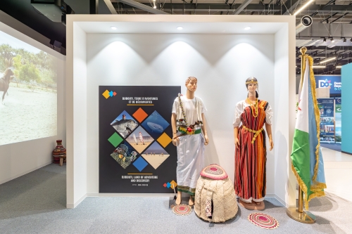 アフリカ大陸北東部、インド洋の北西側にあるアデン湾と紅海がぶつかる場所にあるため、ジブチは海上輸送の拠点として有名です。乾燥地帯で「世界一暑い国のひとつ」といわれるだけに、農業は発達しない代わりに港湾都市が栄え、中継貿易が国の経済を支えています。また、エネルギーや観光、文化、デジタル開発とイノベーション、投資機会などを国の発展のビジョンに掲げてきました。パビリオンでは、ジブチの発展の歴史を紹介するほか、工芸品の展示などを行います。