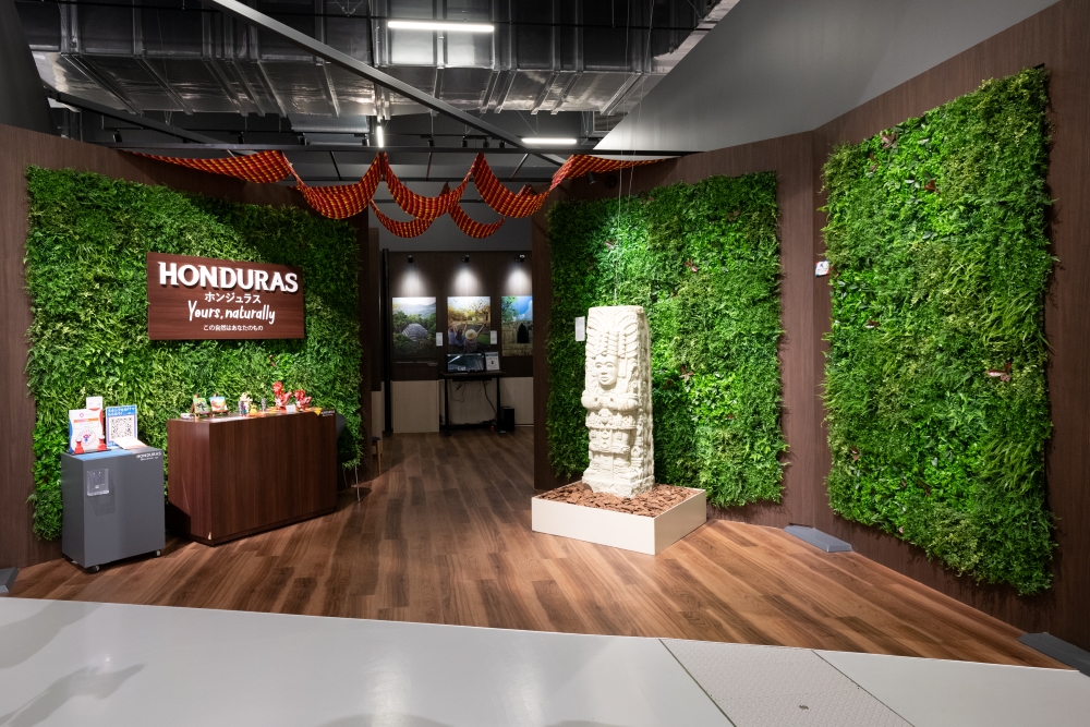 中央アメリカ中部のカリブ海に面しており、古代マヤ文明が栄えた地として、3000年におよぶ歴史と文化を持っています。コパン遺跡など多くの有名なマヤ遺跡がある一方で、カリブ海側には美しいビーチや海岸線、島々が広がっています。人口の7割が農業で生計を立てており、特にコーヒーとタバコの生産量は世界有数の規模を誇ります。パビリオンでは、自然と文化が共存する国の魅力を、大型の映像や写真パネル、VR体験で紹介します。マヤの彫刻展示やコーヒーの試飲も楽しめます。