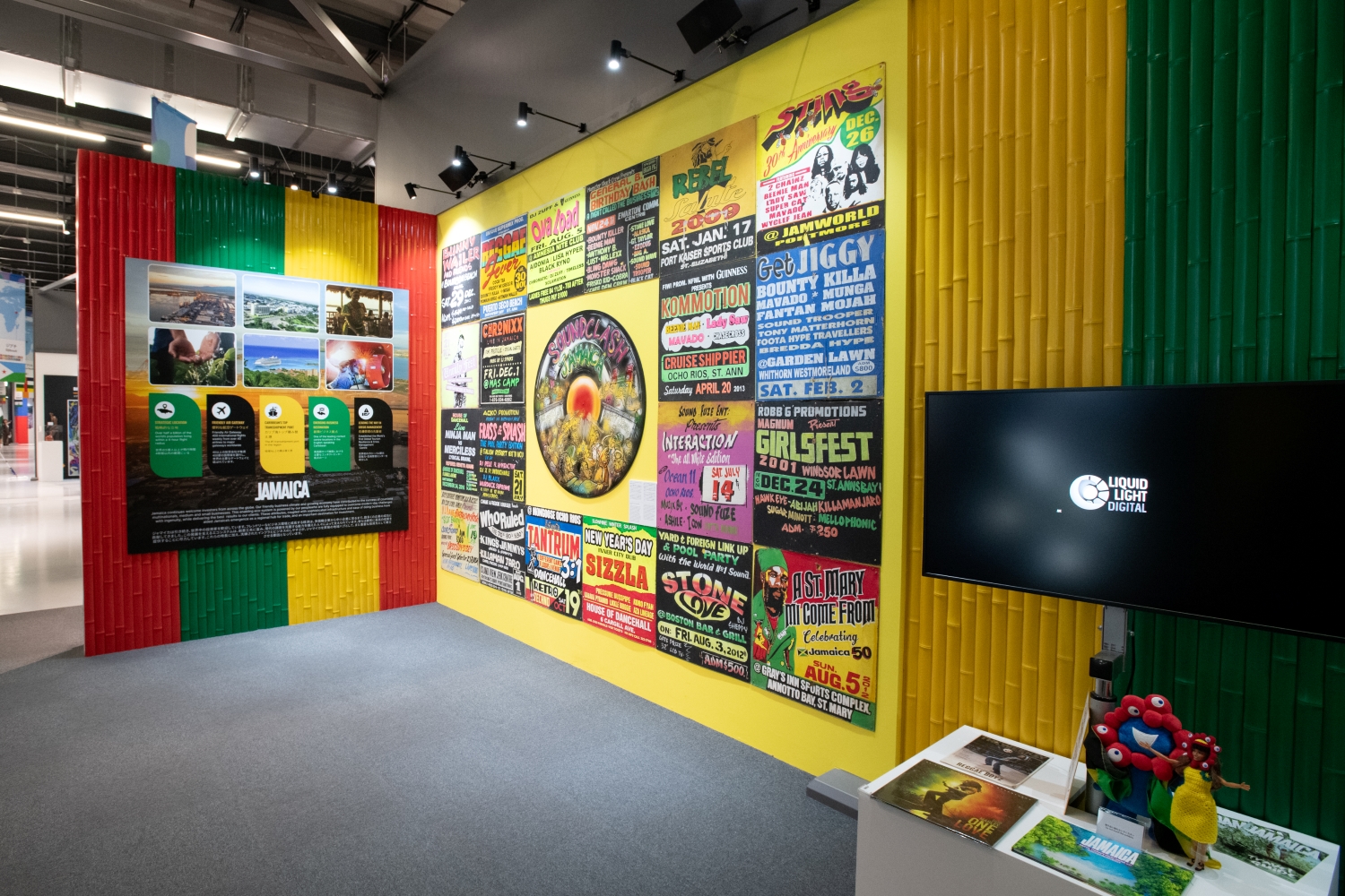 ジャマイカは、カリブ海に浮かぶ熱帯海洋性気候の島で、年間を通した観光地です。120を超える川が中央山脈を源流として壮大な滝を形成し、海岸平野を横切ってカリブ海へ注いでいます。パビリオンでは、都市や自然の風景、魅力的な人々を紹介します。伝説のミュージシャン、ボブ・マーリーや驚愕の陸上選手ウサイン・ボルトの等身大の像と写真撮影もできます。文化のるつぼで、食や建築、音楽などあらゆる分野で多様性を反映するジャマイカの珍味を試食し、本物のボブスレーに触れてみてください。