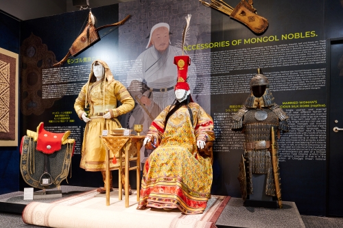 ユーラシア大陸の中央部に位置し、国土の約80%は草原です。国民は遊牧民として有名ですが、近年では都市部に定住する人も増えています。パビリオンは伝統的な衣装や帽子、靴や石像、弓などの展示で遊牧民の暮らしを知ることができるほか、チンギス・ハンなど偉人たちの肖像画や武器、直筆の書物も展示されます。