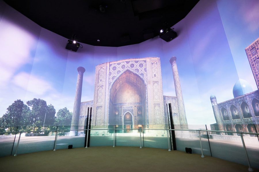 続くエリアでは、360度に広がる美しい映像が来場者を包み込みます。伝統と革新、文化と持続可能性――ウズベキスタンのルーツとこれからの未来をつなぐストーリーが展開されていきます。